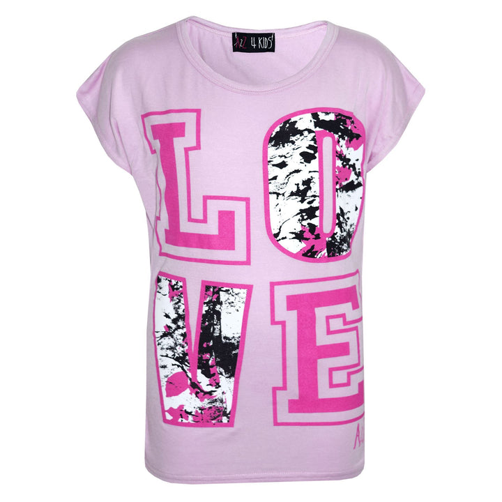 Kids Girls Top LOVE Splash Print Stylish Fashion T Shirt Top New Age 7-13 Years
