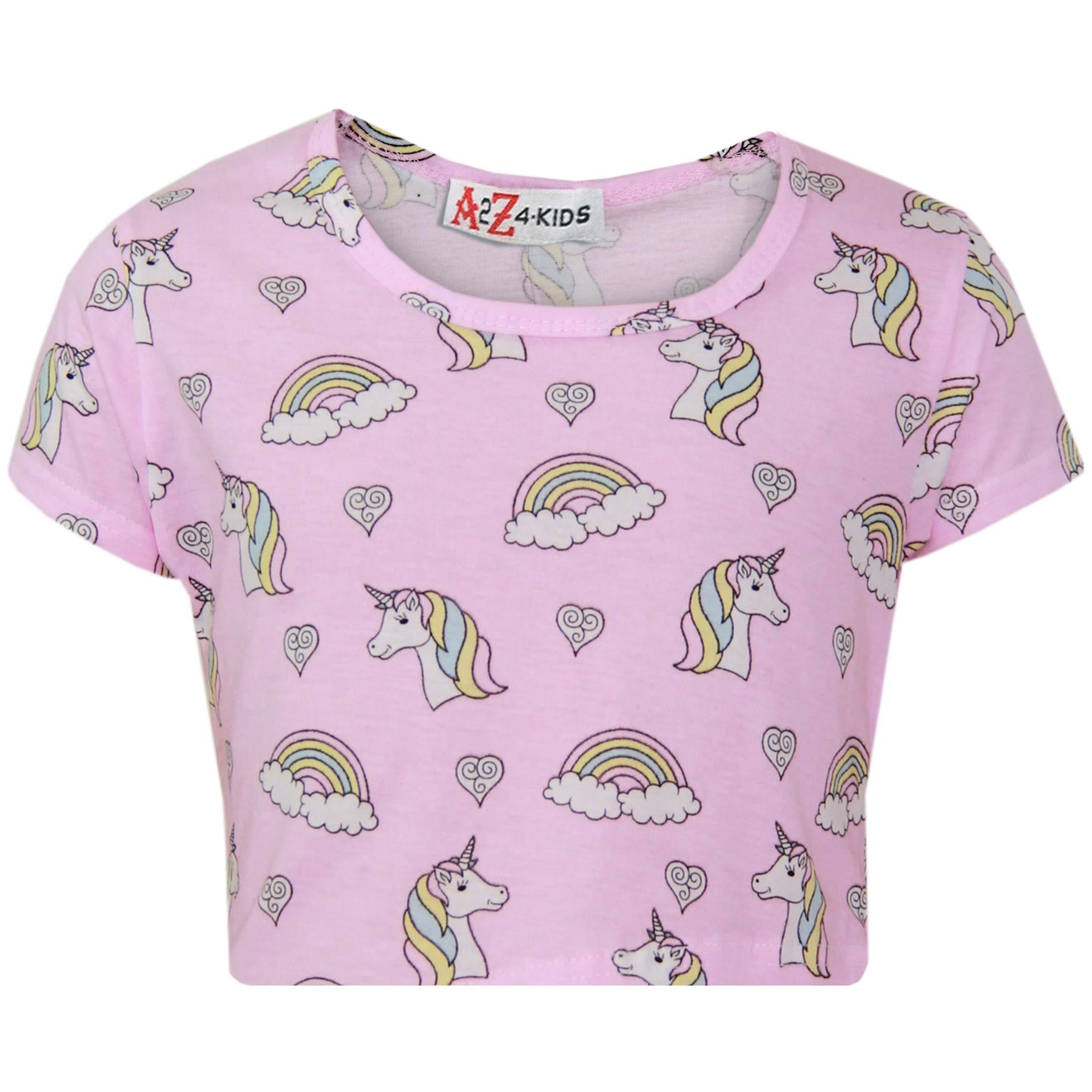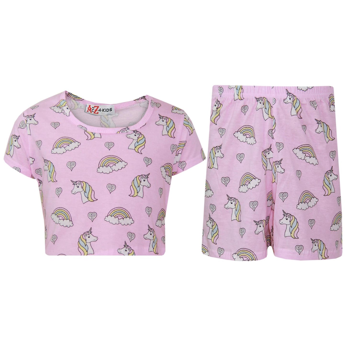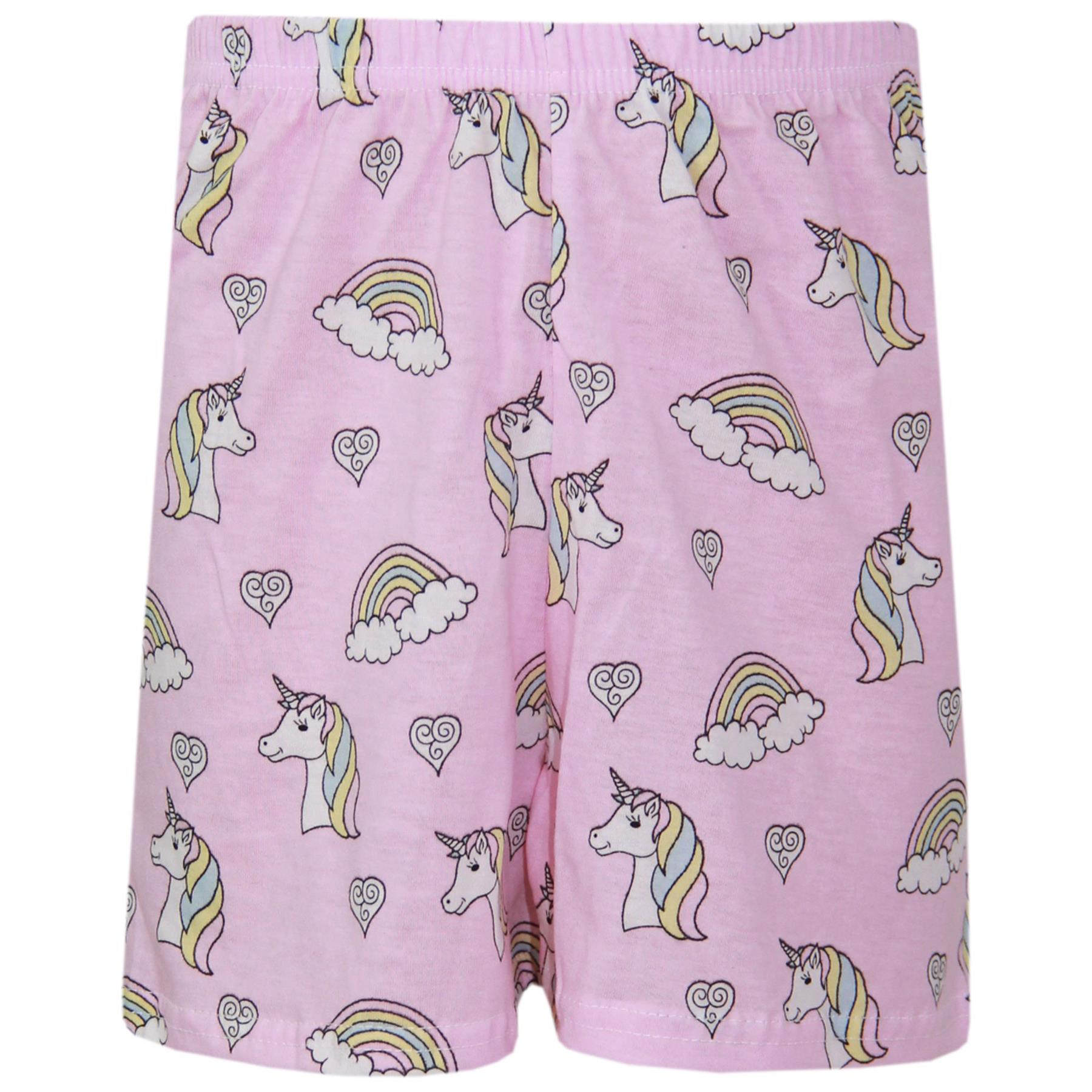 Kids Girls Top & Shorts 100% Cotton Unicorn Rainbow Fashion Summer Outfit Set