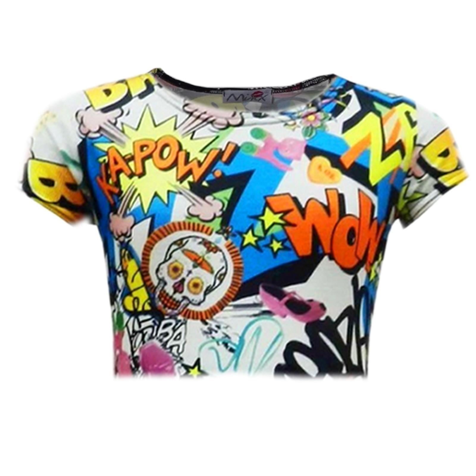 Kids Girls Tops Designer Comic Graffiti Bang Print Trendy Crop Top & Legging Set