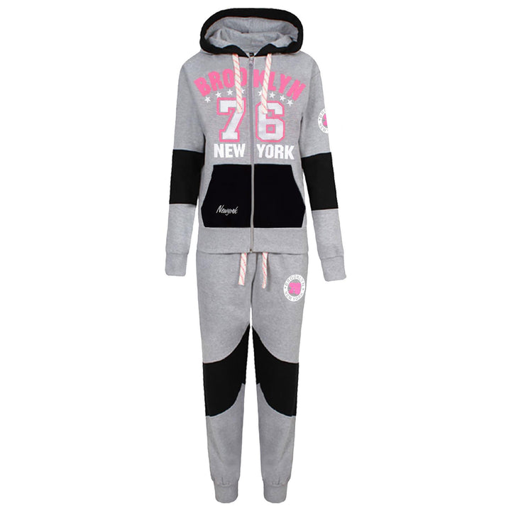 Kids Girls Tracksuit Brooklyn 76 New York Print Hoodie & Bottom Jog Suit 7-13 Year