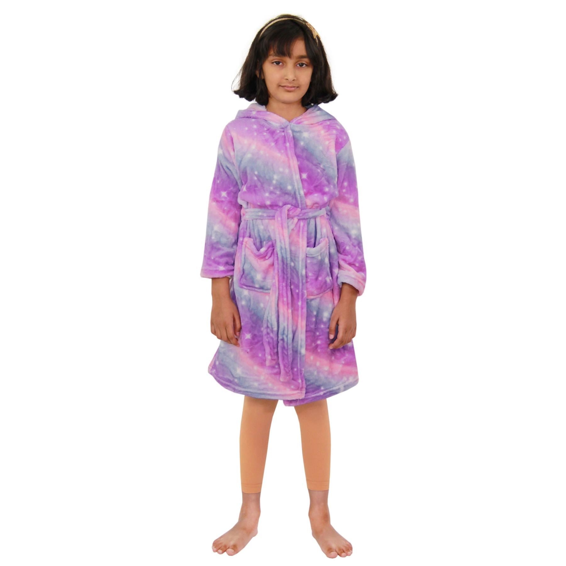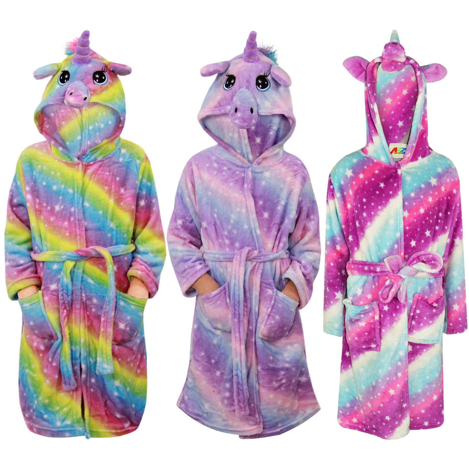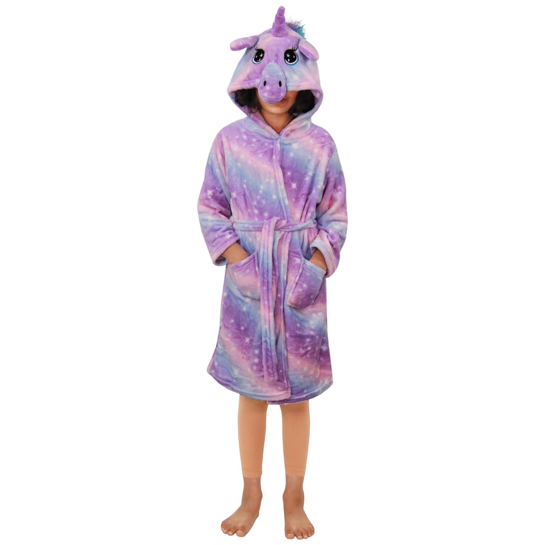 Kids Girls Unicorn Bathrobe Hooded Galaxy Xmas Cosplay Costume Soft Lounge Suit