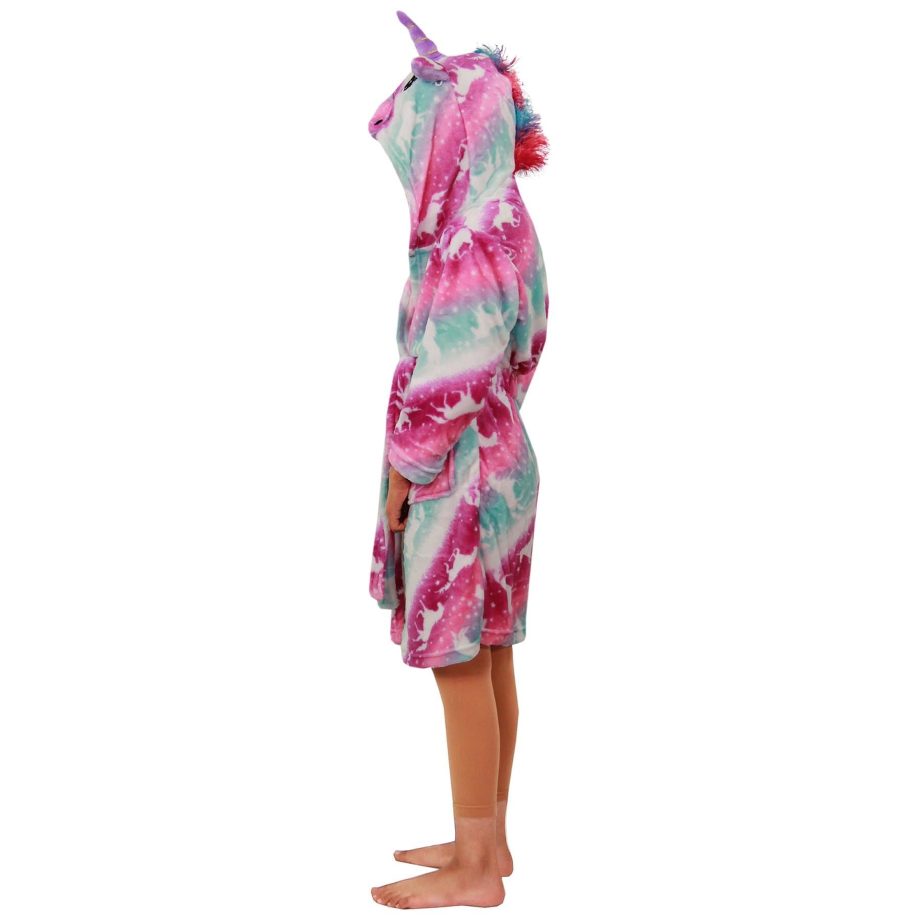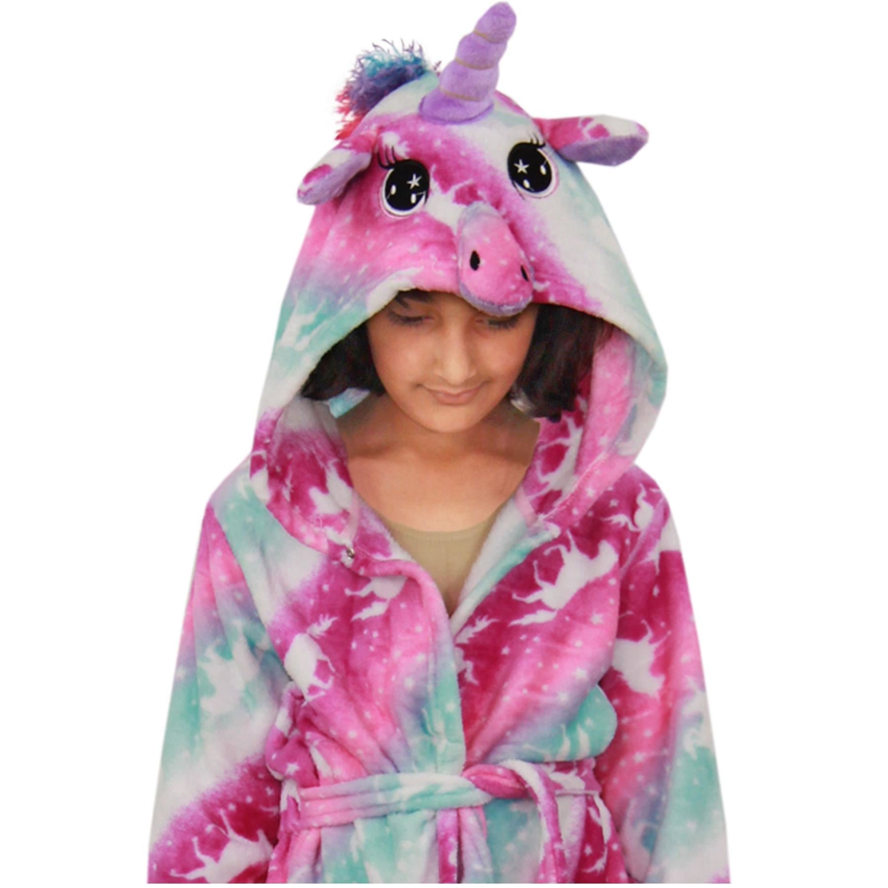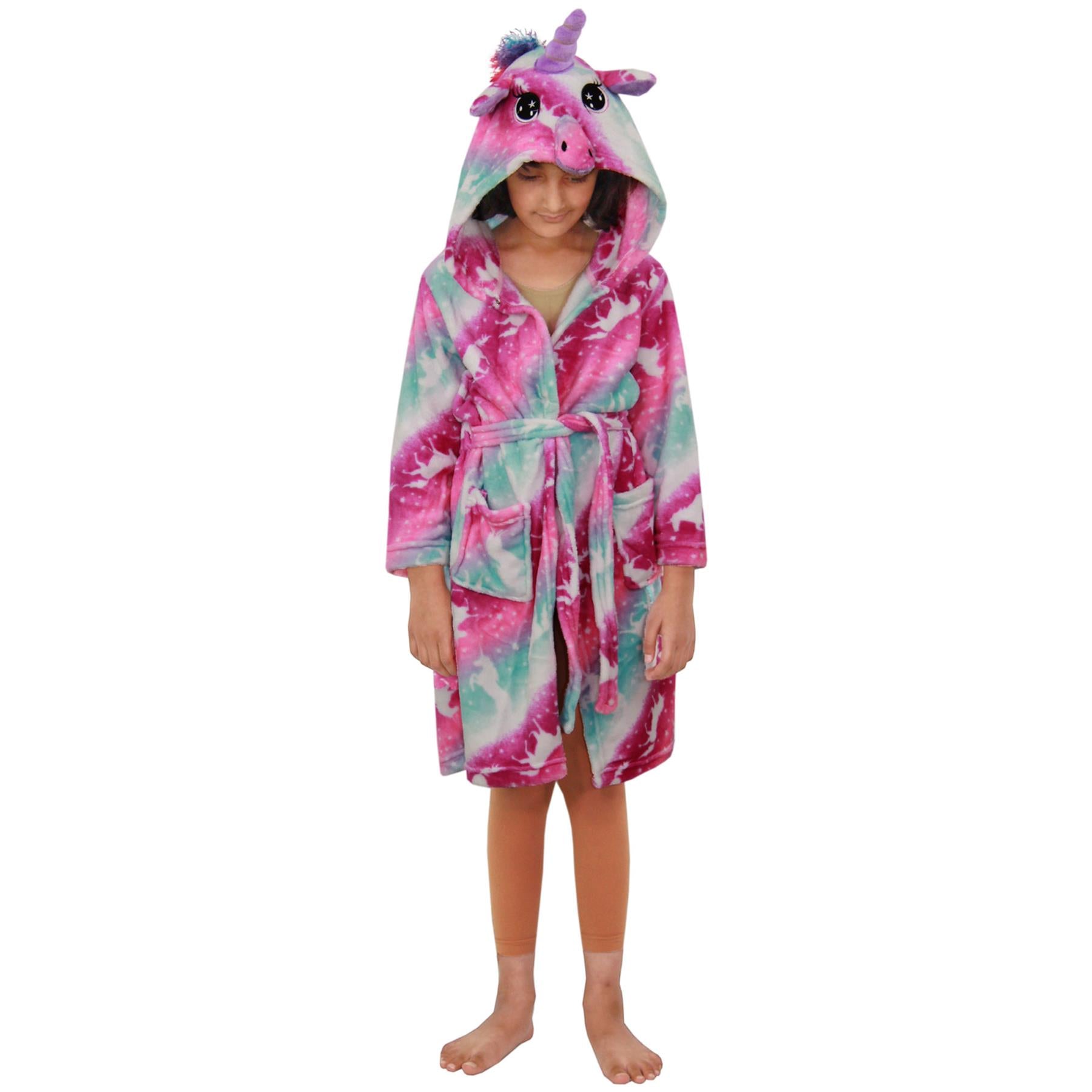 Kids Girls Unicorn Hooded Bathrobe Relax Gown 3D Xmas Cosplay Costume Loungewear