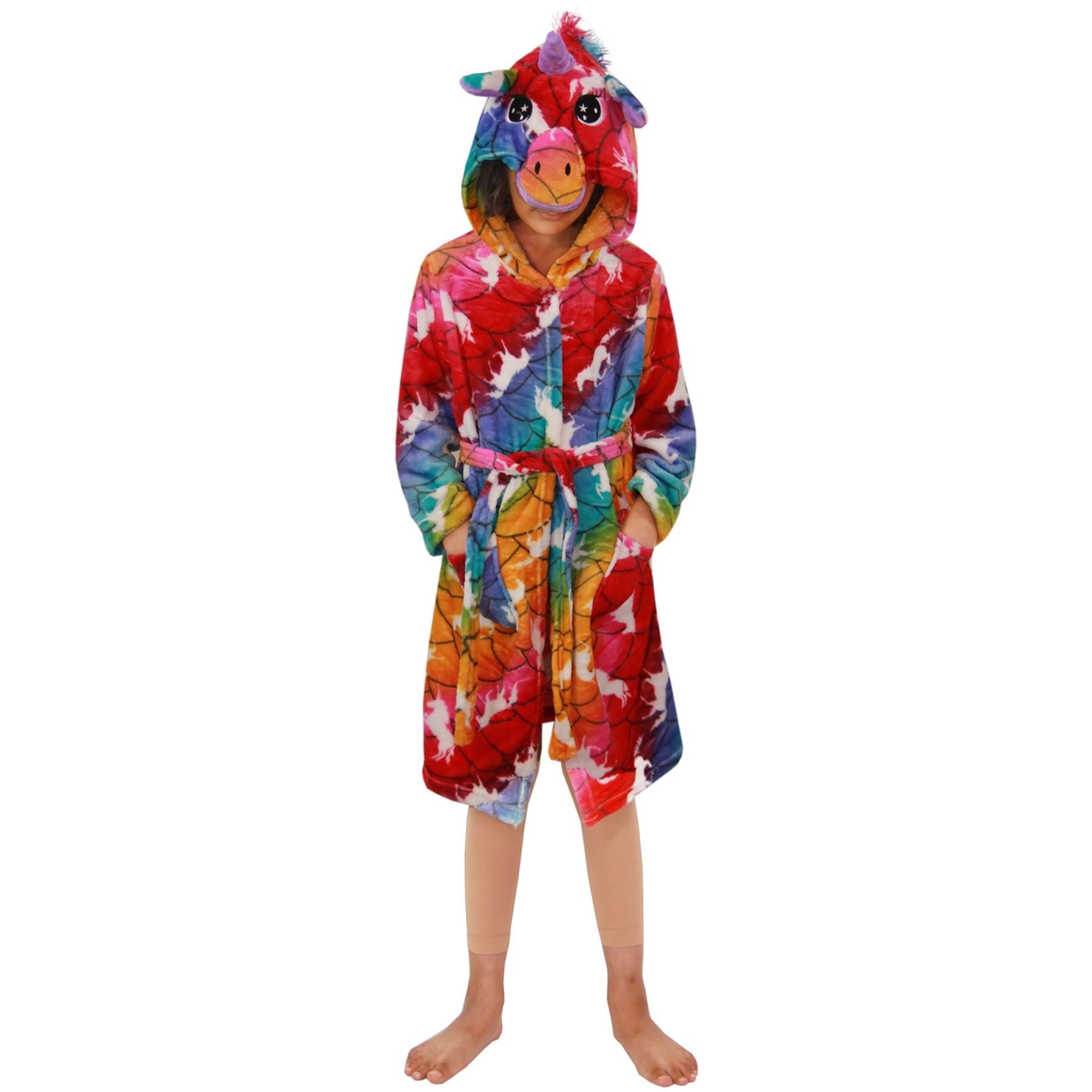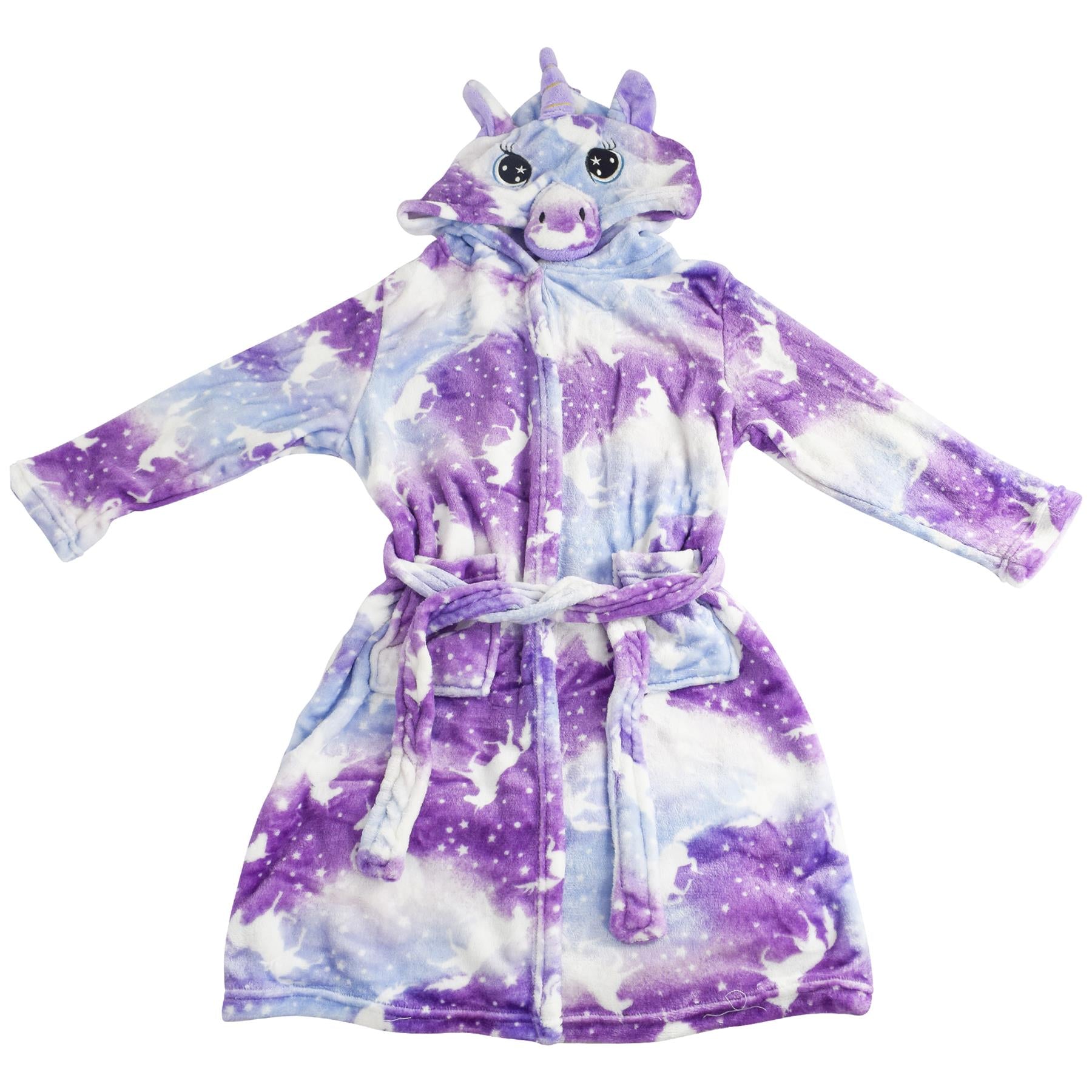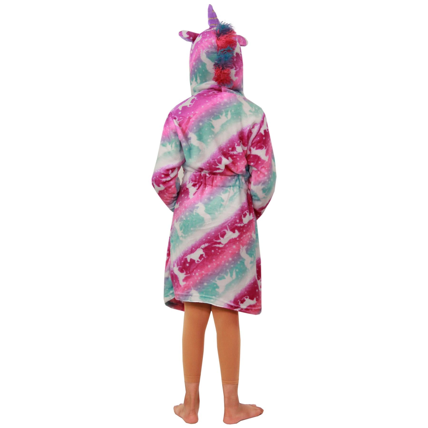 Kids Girls Unicorn Hooded Bathrobe Relax Gown 3D Xmas Cosplay Costume Loungewear