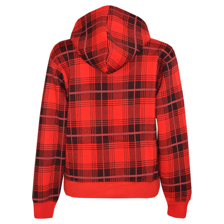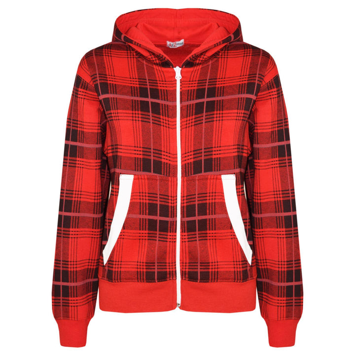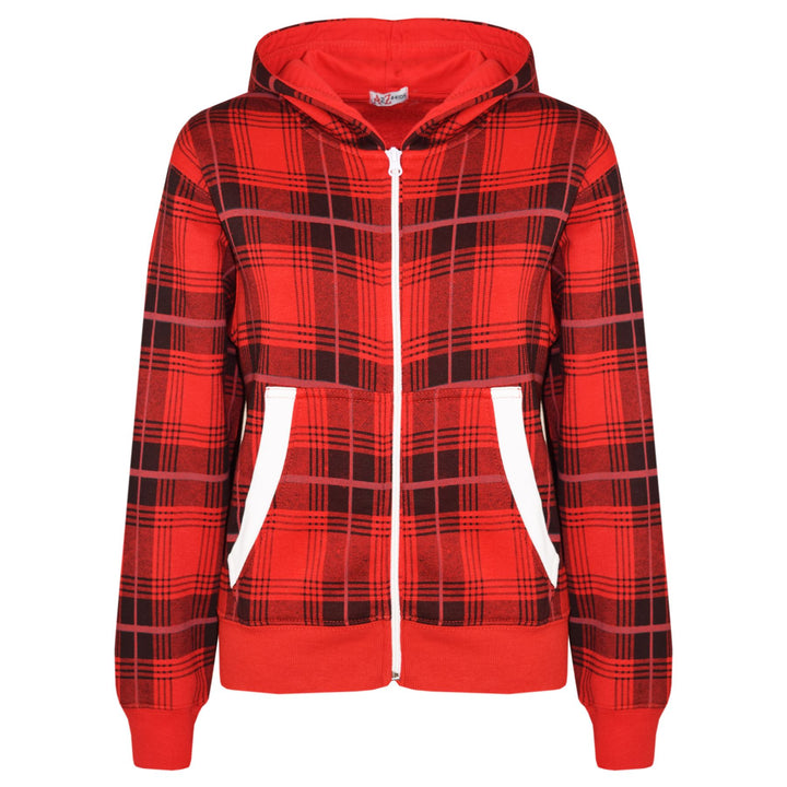 Kids Jacket Boys Girls Fleece Tartan Print Zipped Top Hooded Hoodie 5-13 Years