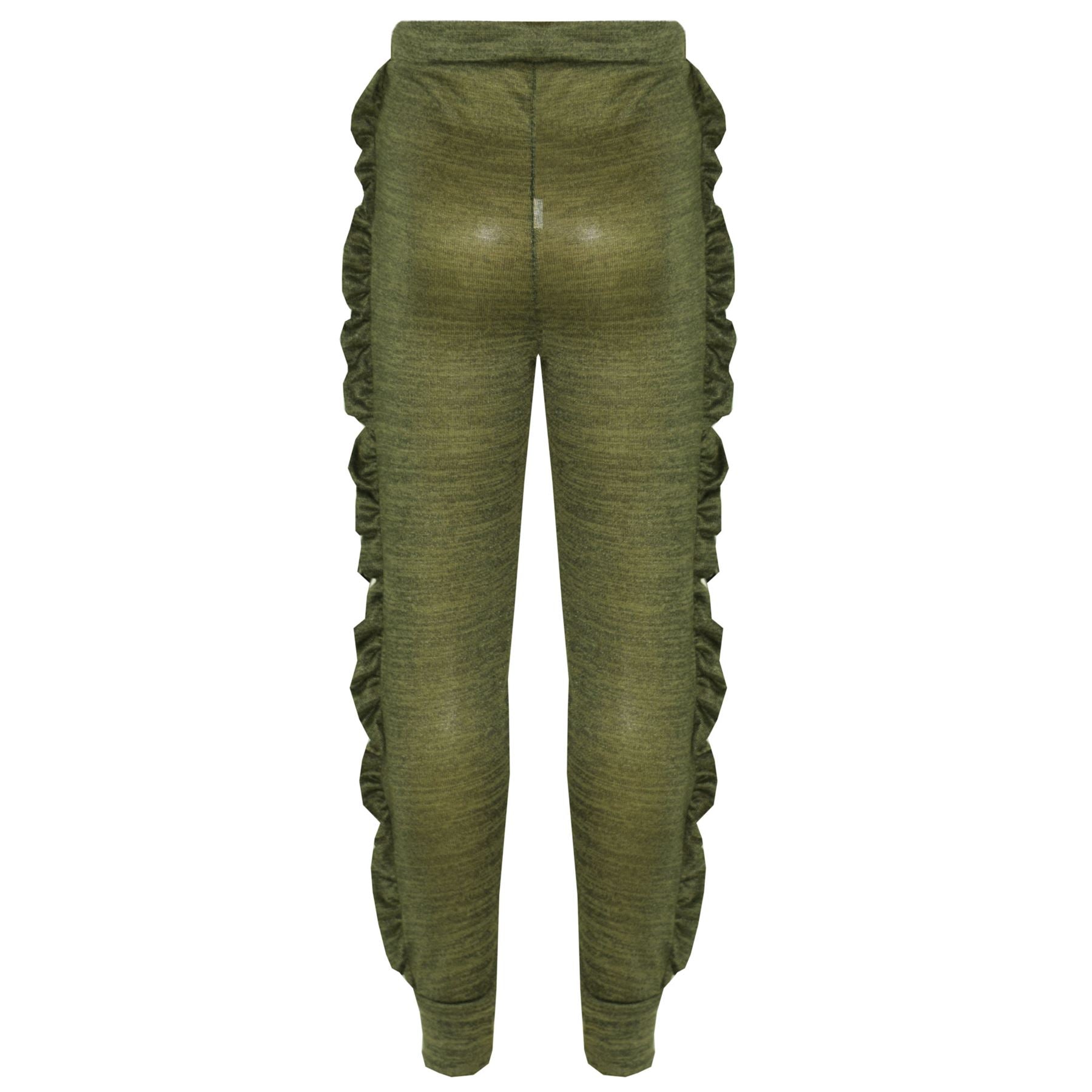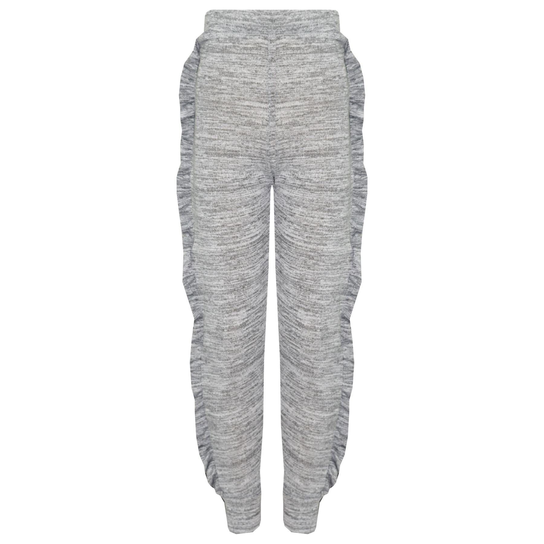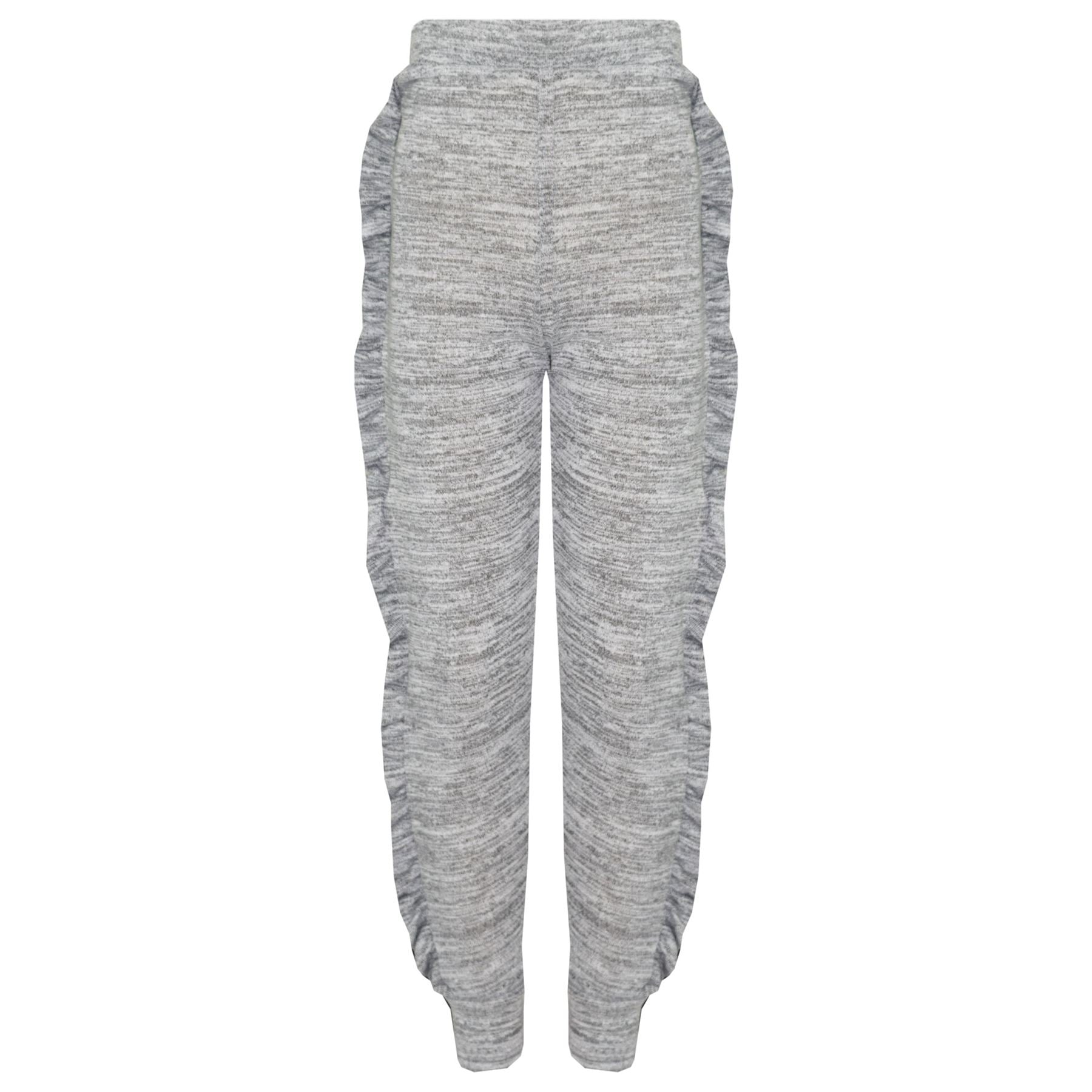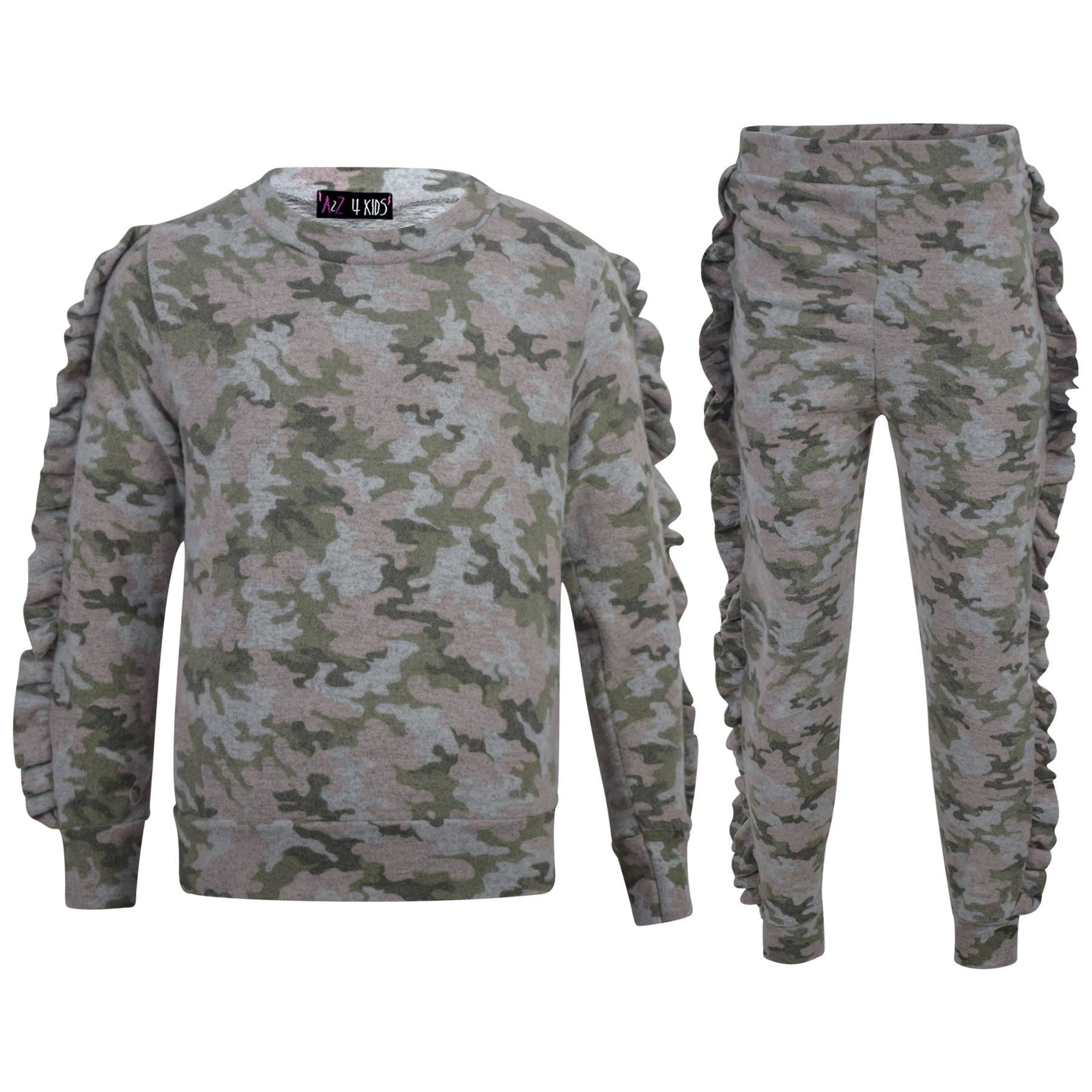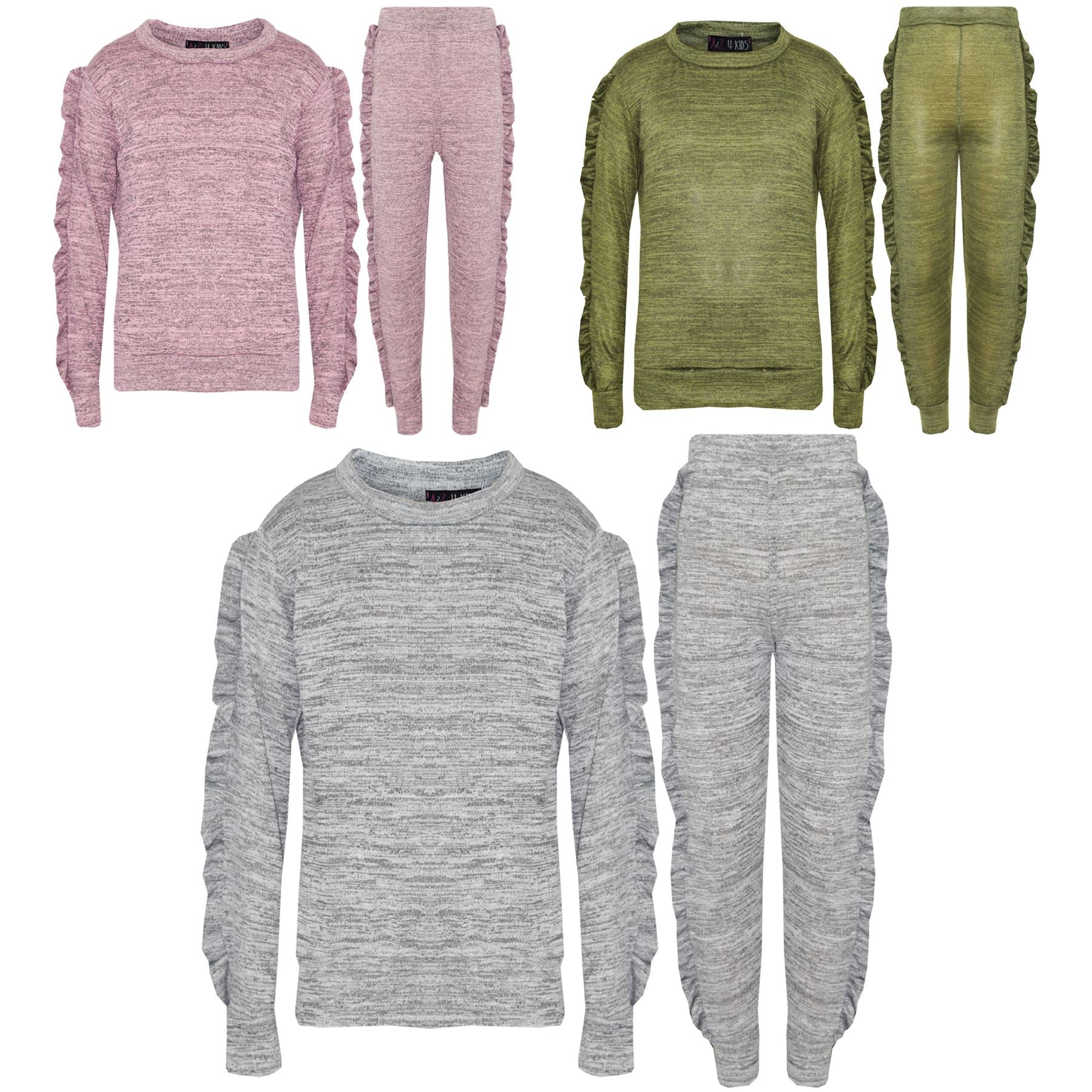 Kids Jogging Suit Girls Plain Frill Sleeve Lounge Suit Tracksuit Top Bottom 2-13