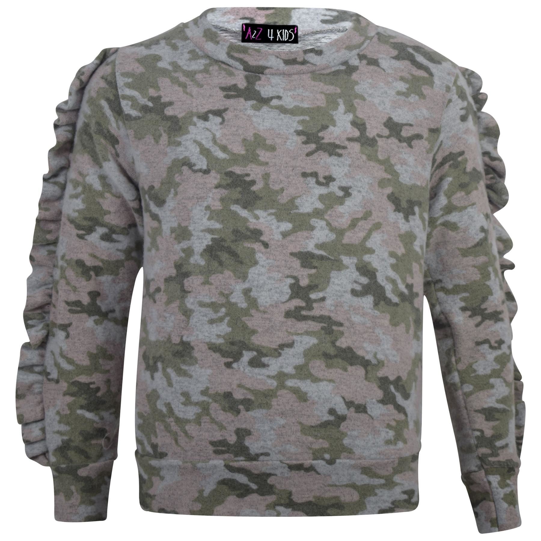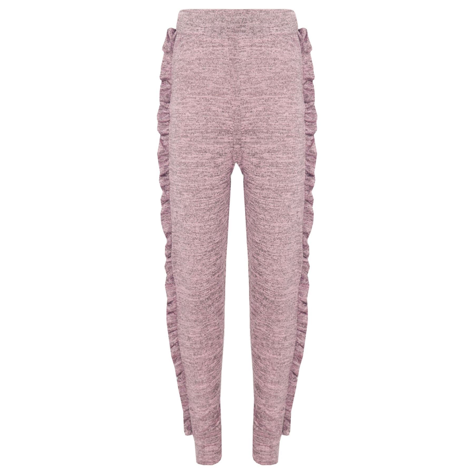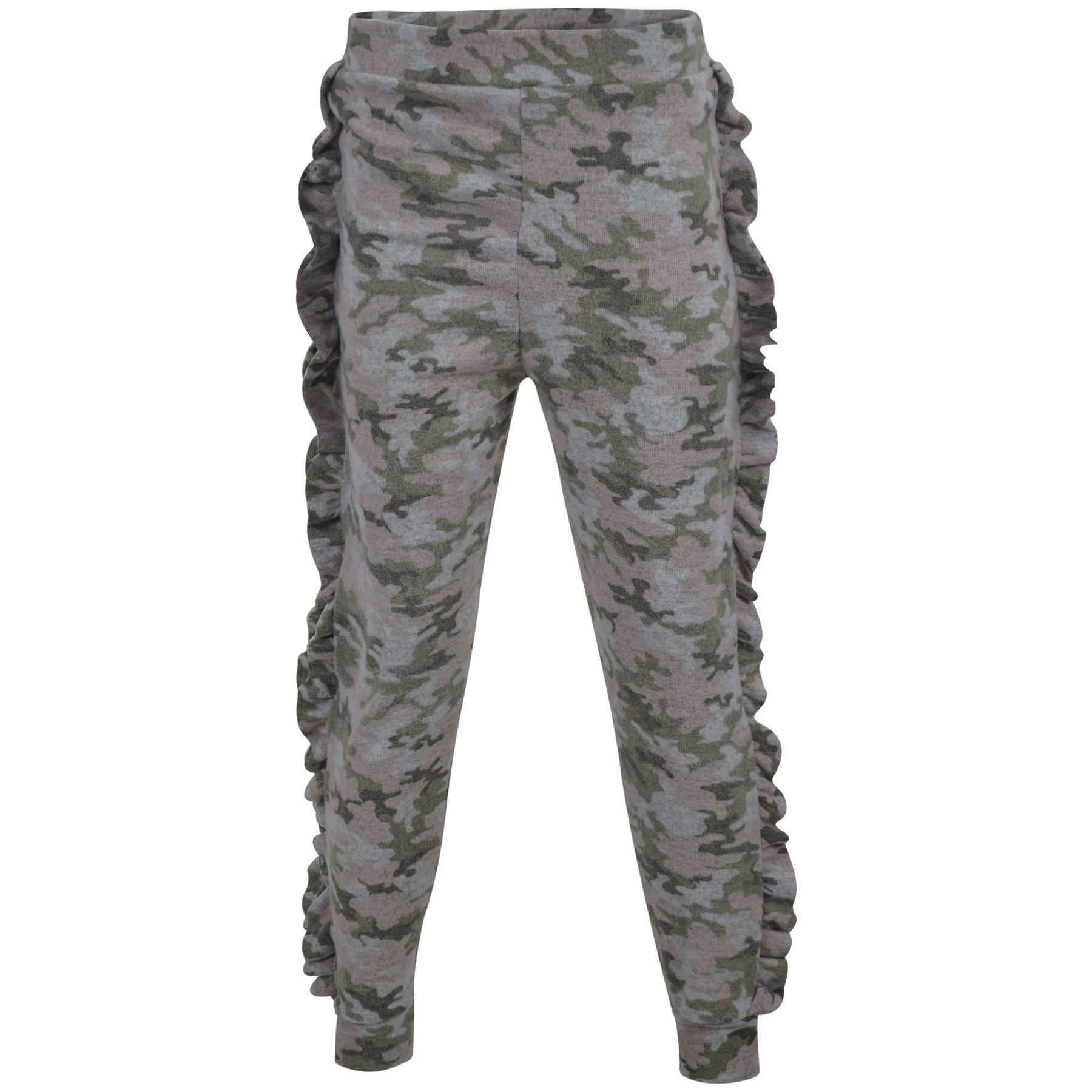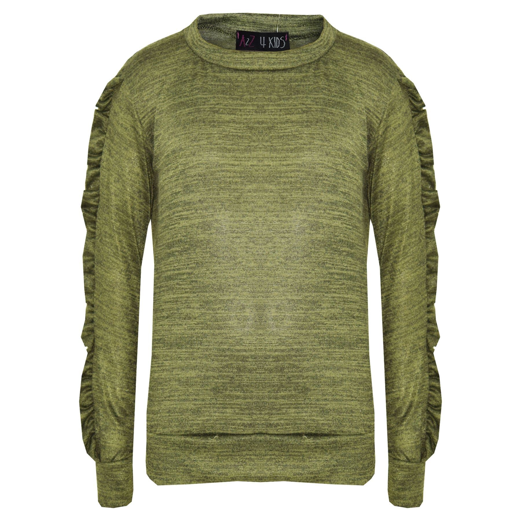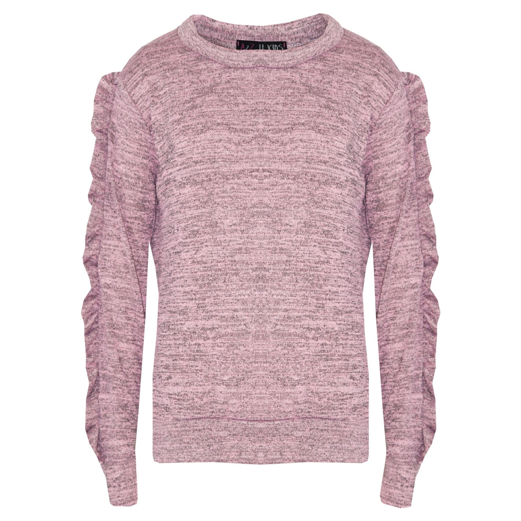 Kids Jogging Suit Girls Plain Frill Sleeve Lounge Suit Tracksuit Top Bottom 2-13