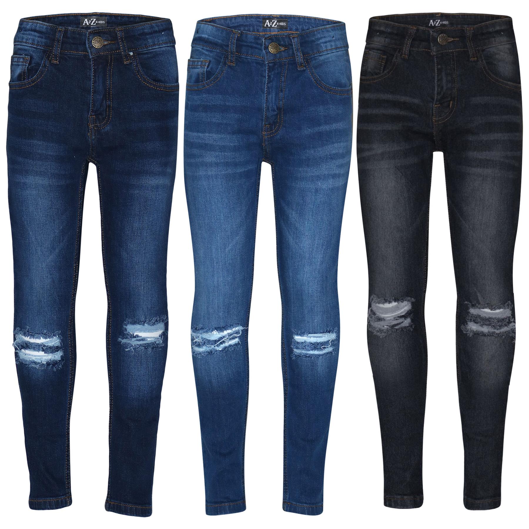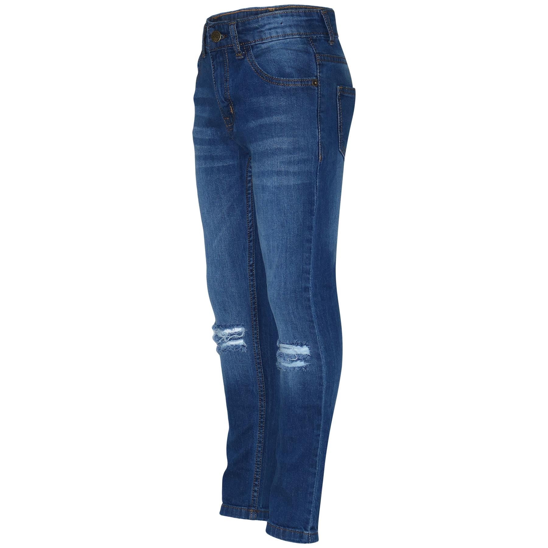 Kids Knee Ripped Jeans Denim Comfort Stretch Trousers Pants Boys Age 5-13 Years