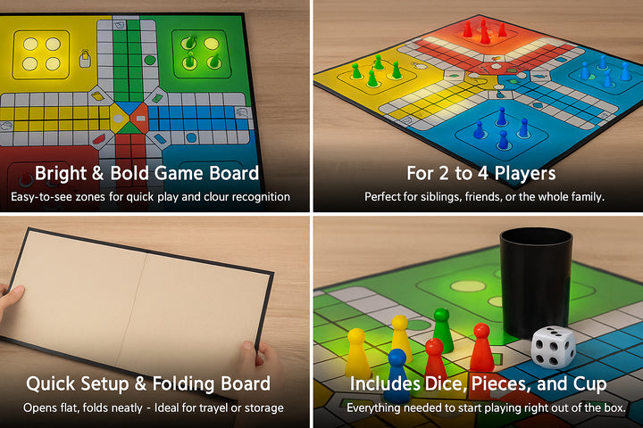 Playing Ludo helps develop essential life skills including turn-taking, planning ahead, and problem solving. Great for children aged 6 and up, the game provides a positive and engaging way to build patience, logical thinking, and communication with peers and adults. -