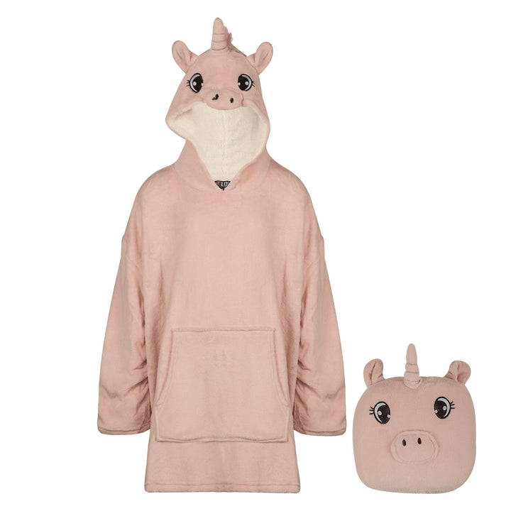 Kids Oversized Unicorn Snuggle Girls Pullover Dressing Blanket Hoodie with Bag