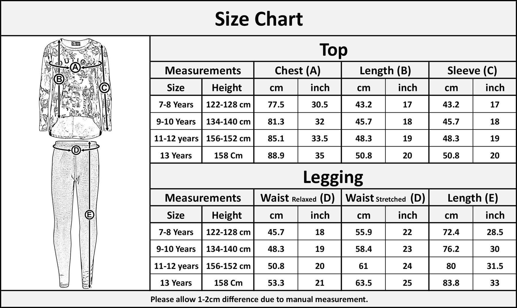 Manufactured using high quality materials - 95% Polyester 5% Elastane - this top and legging set is made for supreme comfort. Featuring a long sleeve top with ‘PARIS’ printed across the front, with matching splash print leggings. Check the size chart for best fit. For ages 7-13. -