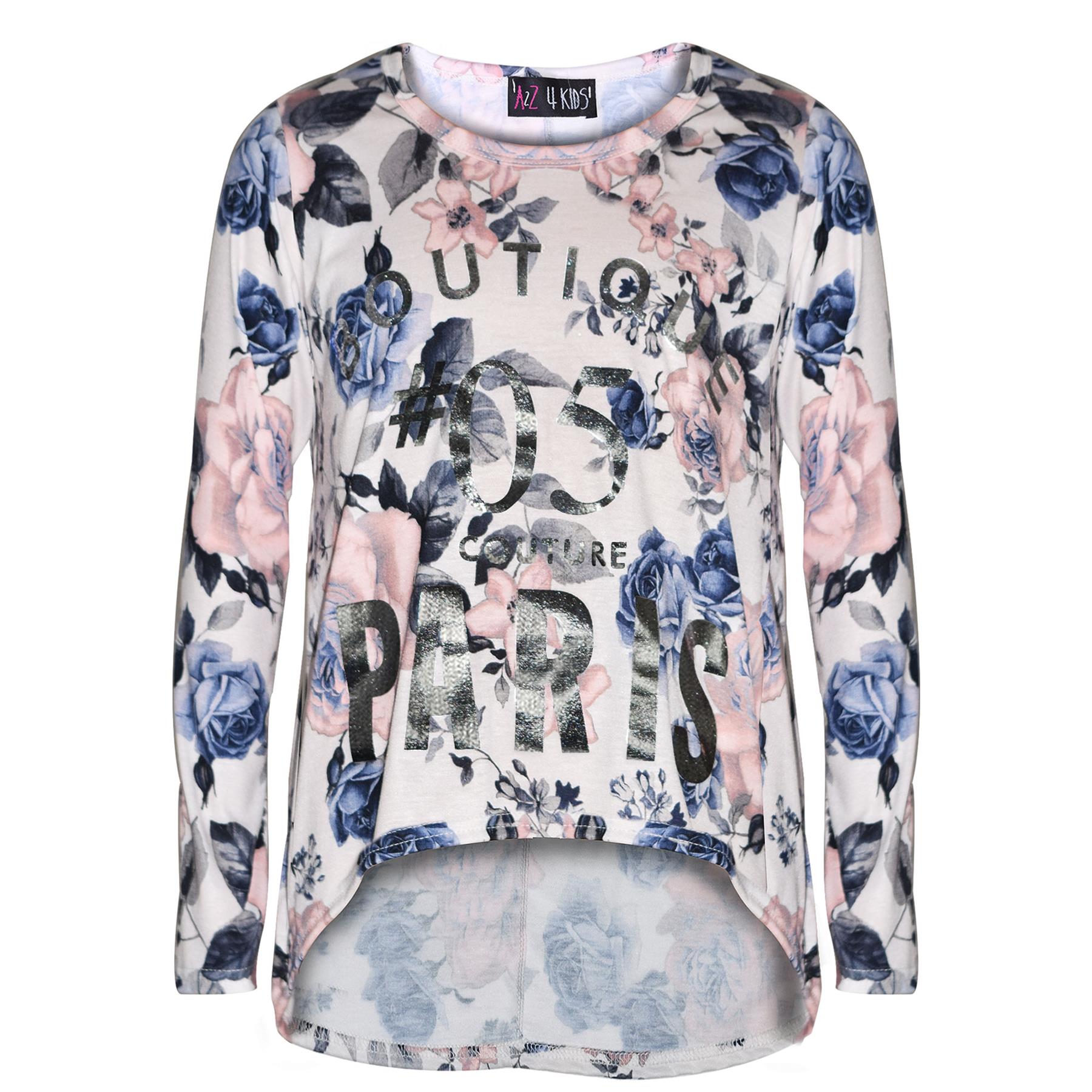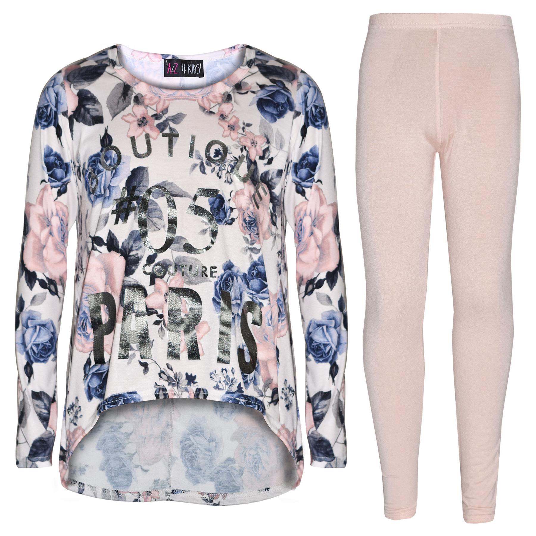Kids Paris Print Floral Long Sleeve T-Shirt Top Leggings Set Girls Age 7-13 Year