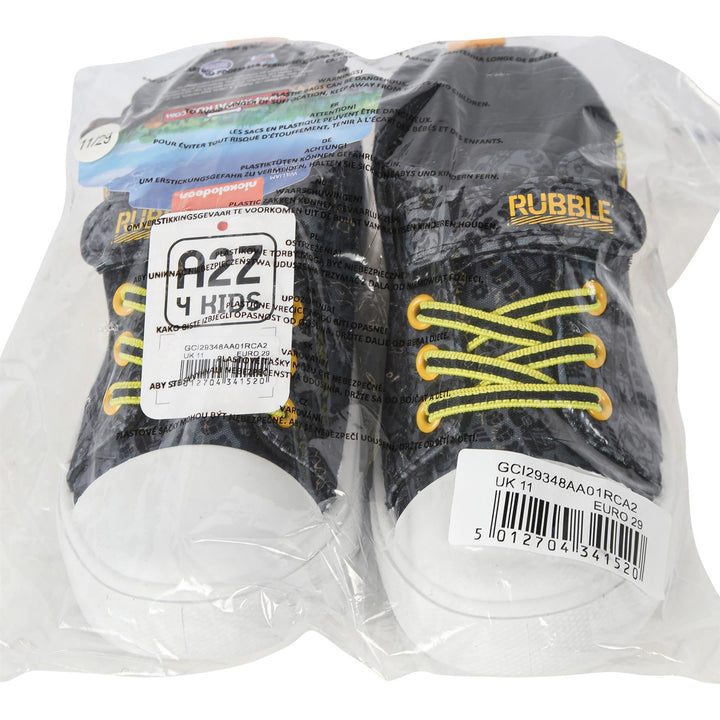 Exclusive to A2Z 4 Kids, these shoes feature a textured black background printed with Rubble symbols, complemented by standout yellow accents and a signature Rubble badge on the side.