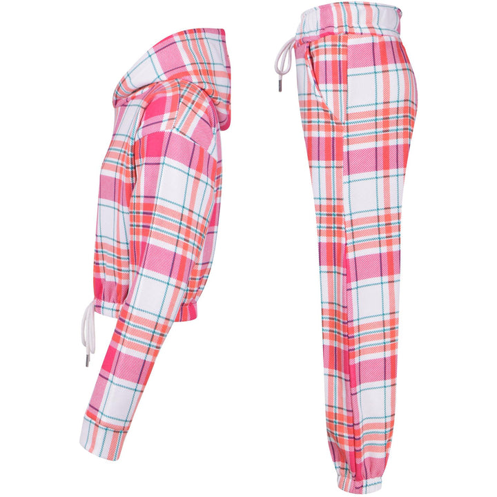 Kids Pink Check Tracksuit Gym Cropped Hoodie Sweatpants Cord Set Girls 5-13 Yr