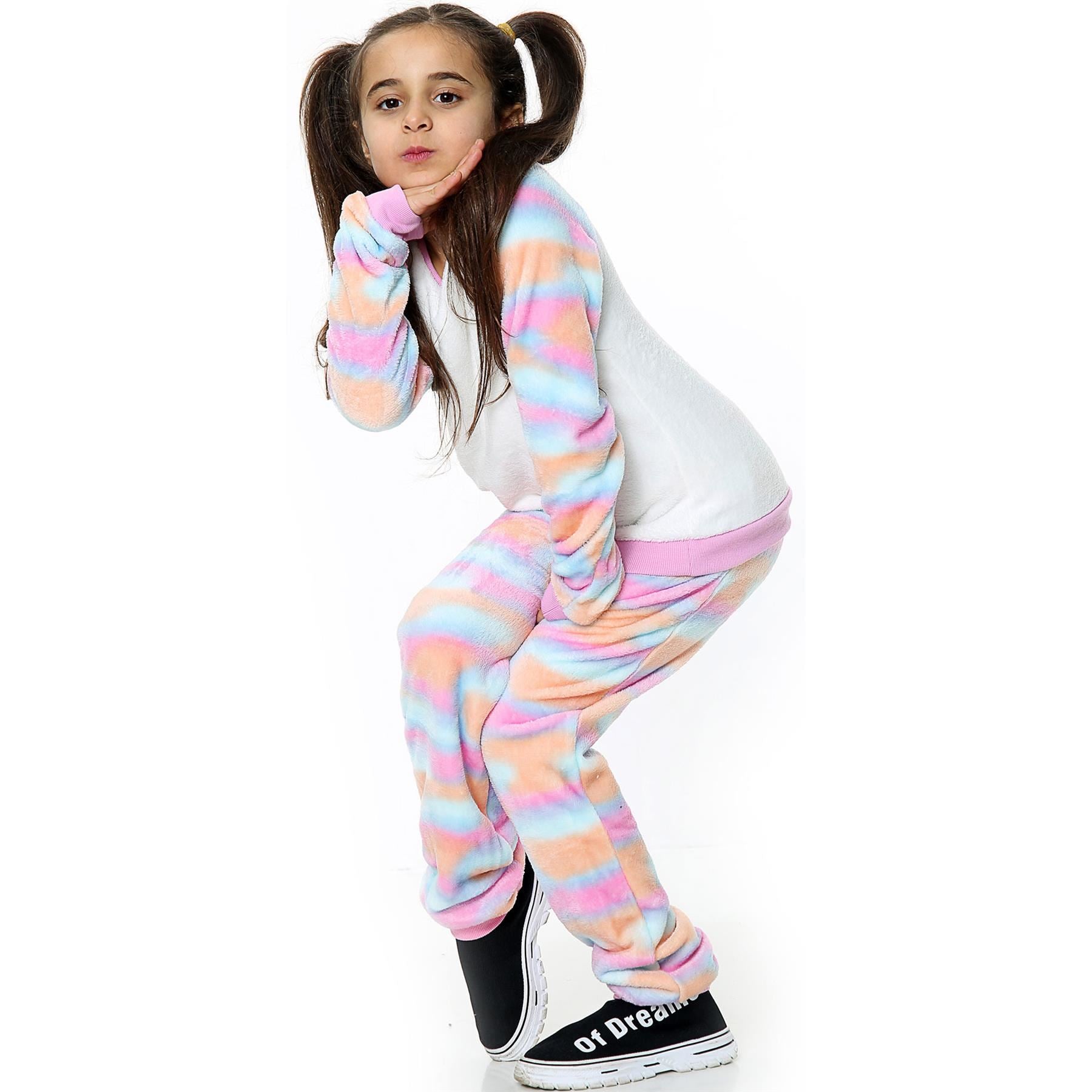Kids Rainbow Pastel Print Sleeve Pyjamas Sleepsuit Costume For Girls Age 5-13