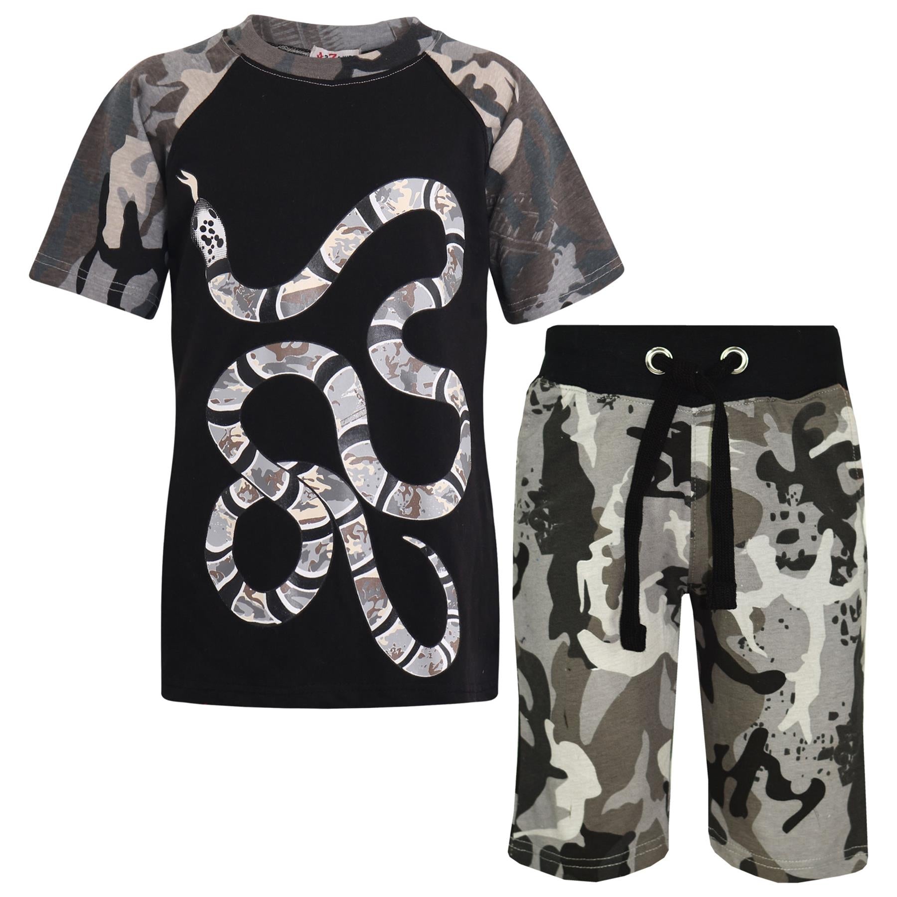 Kids Snake Camo Print Top & Shorts Set Active Wear Girls Boys Age 5-13 years