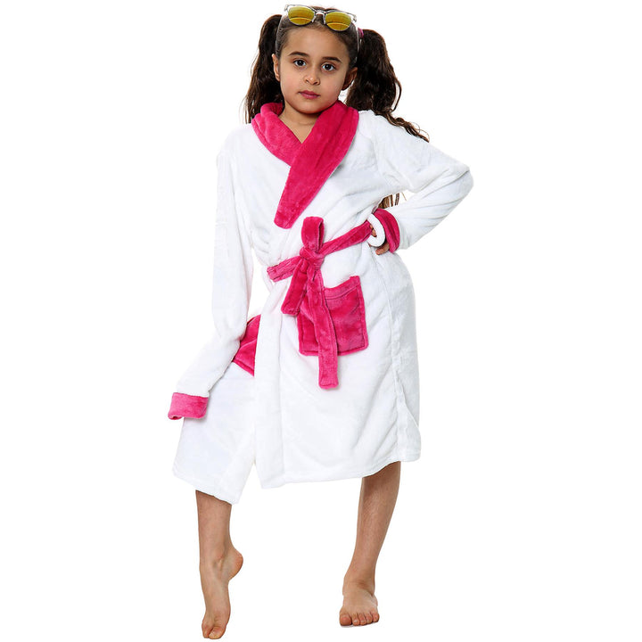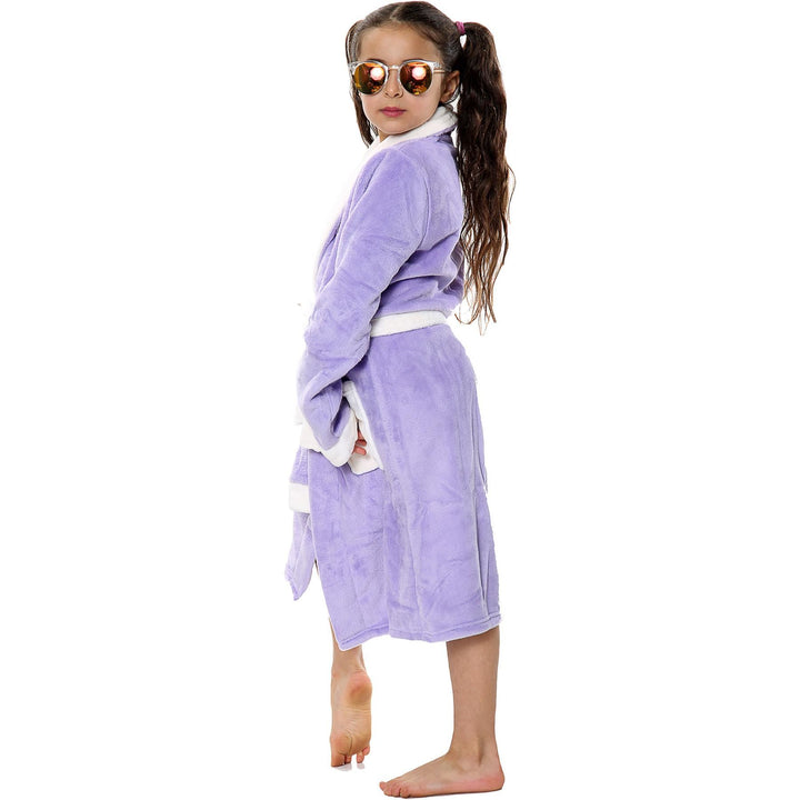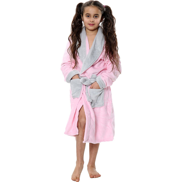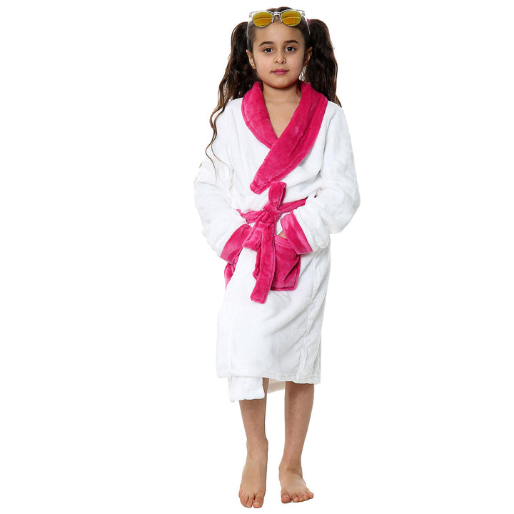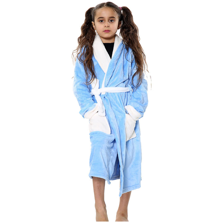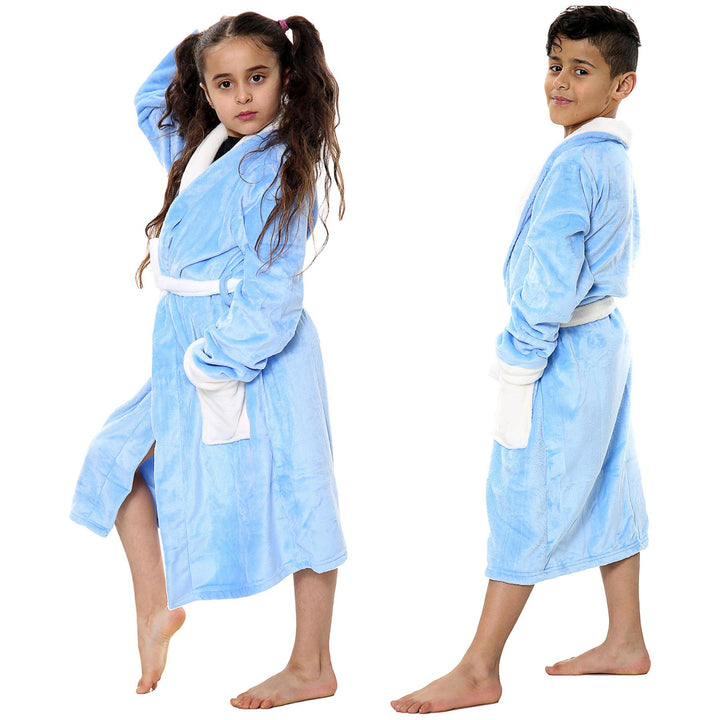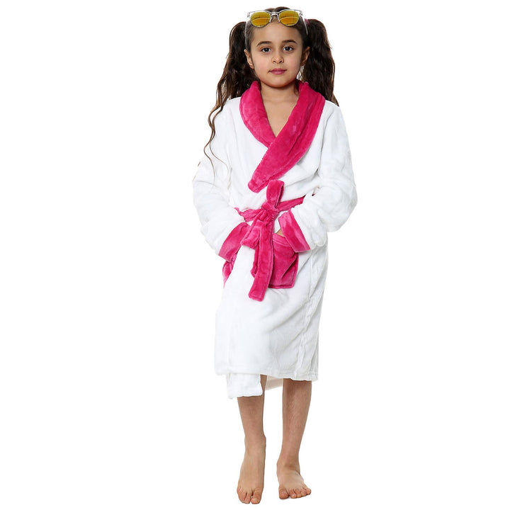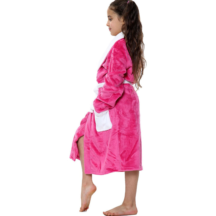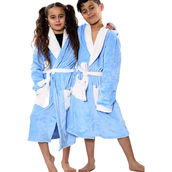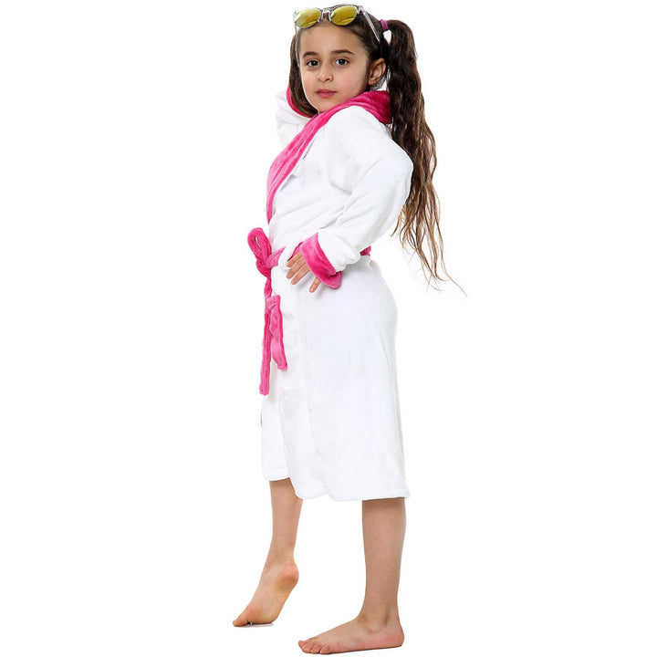 Kids Soft Fleece Bathrobe Dressing Gown Hooded Swim Beach Girls Boys 2-13 years
