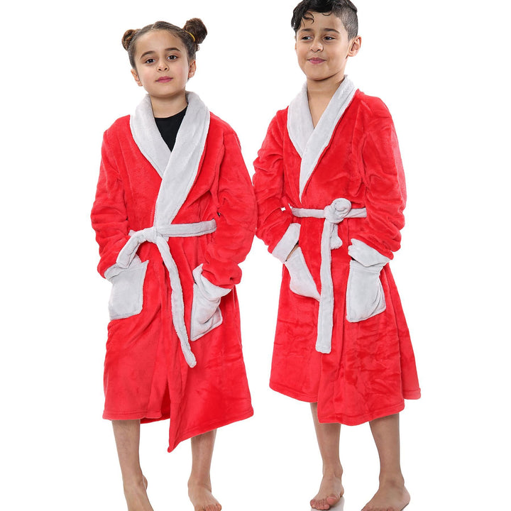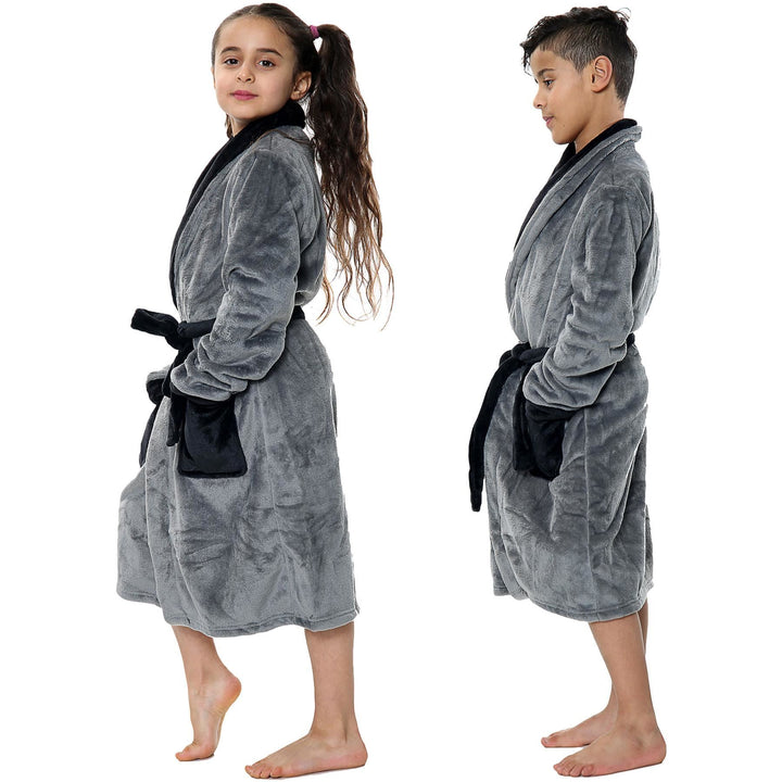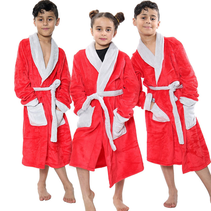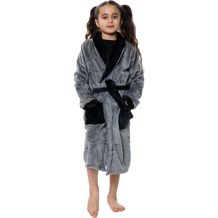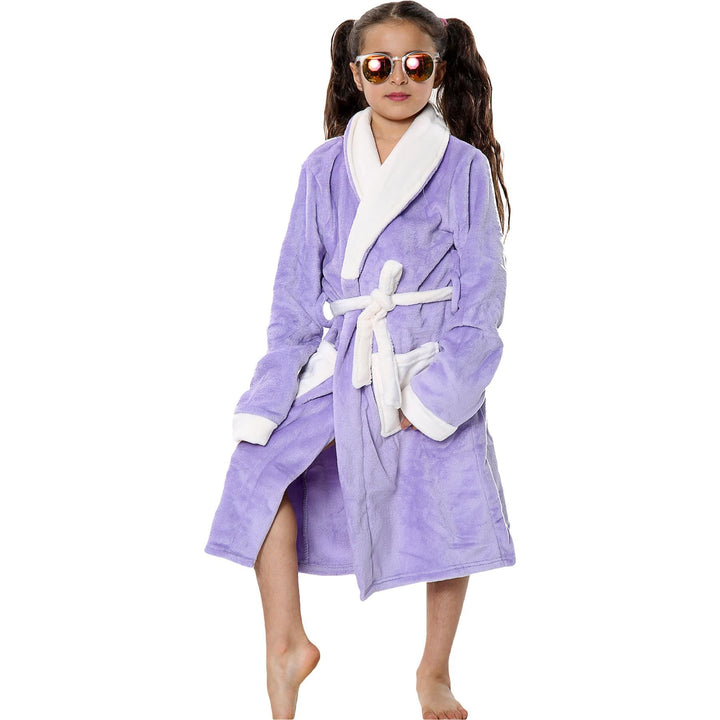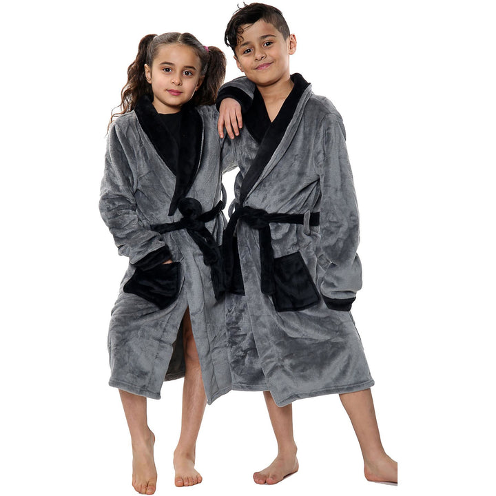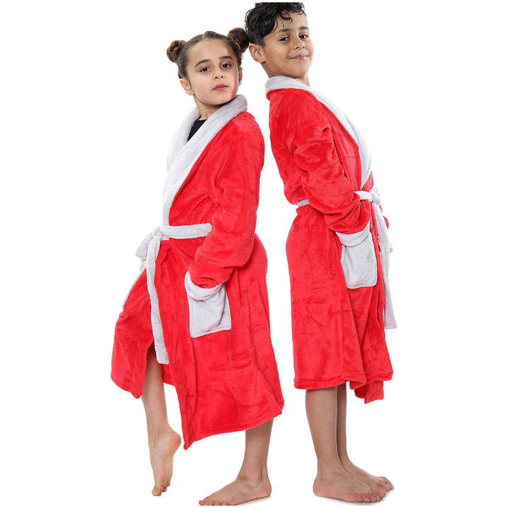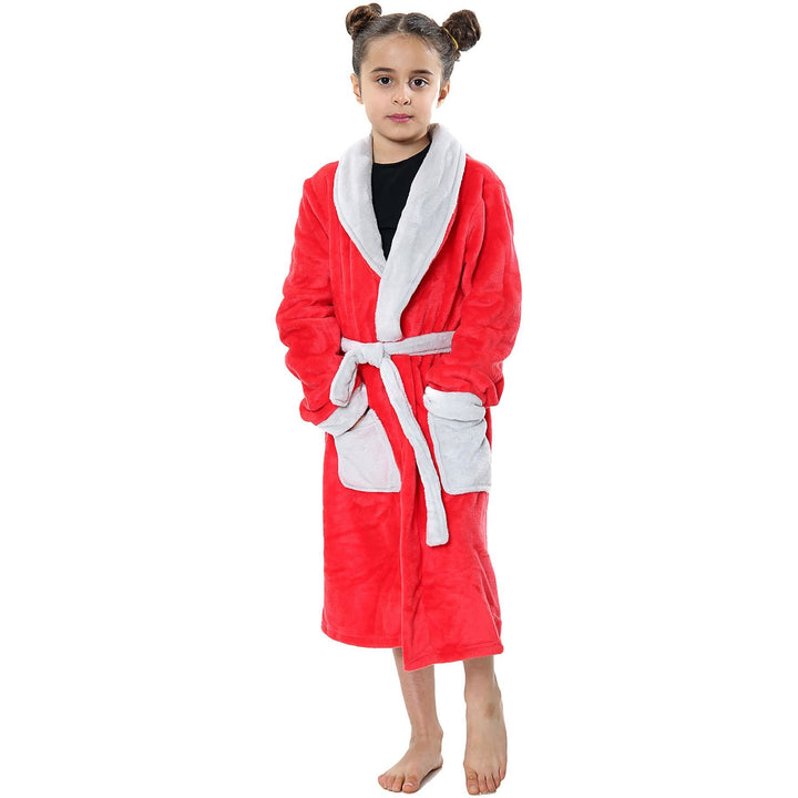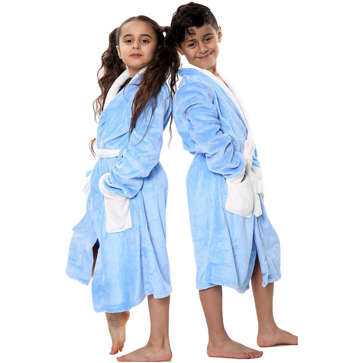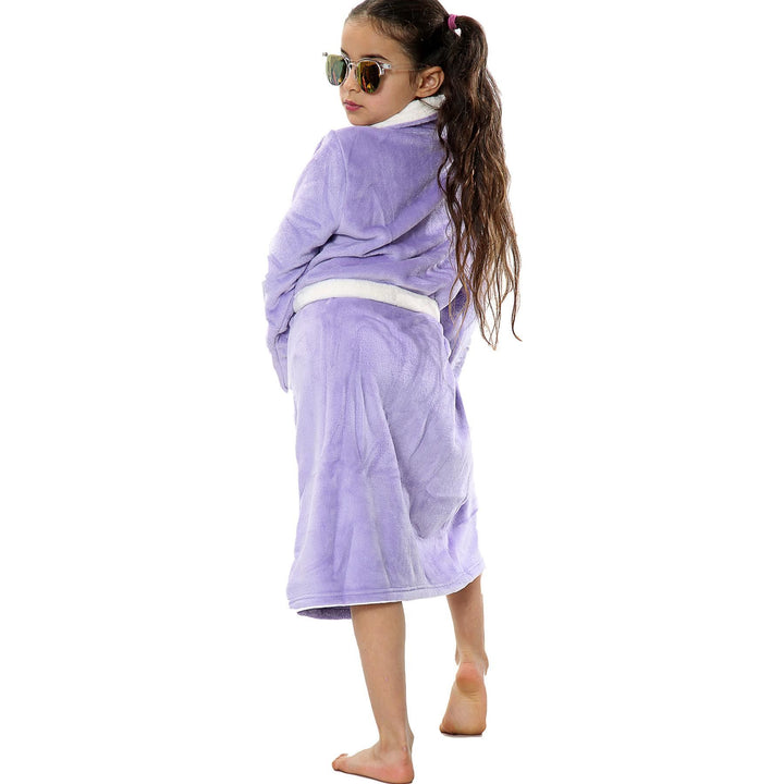 Kids Soft Fleece Bathrobe Dressing Gown Hooded Swim Beach Girls Boys 2-13 years