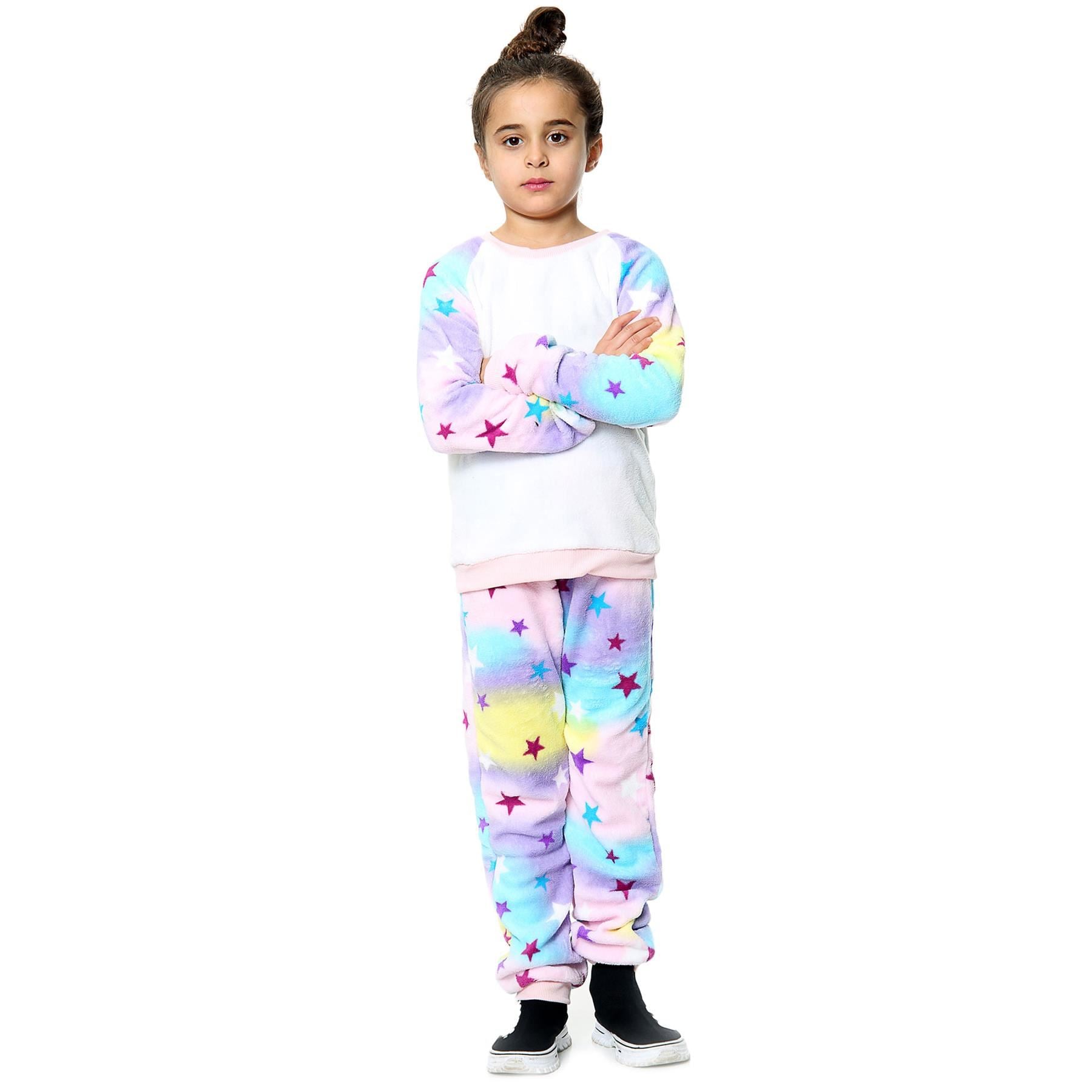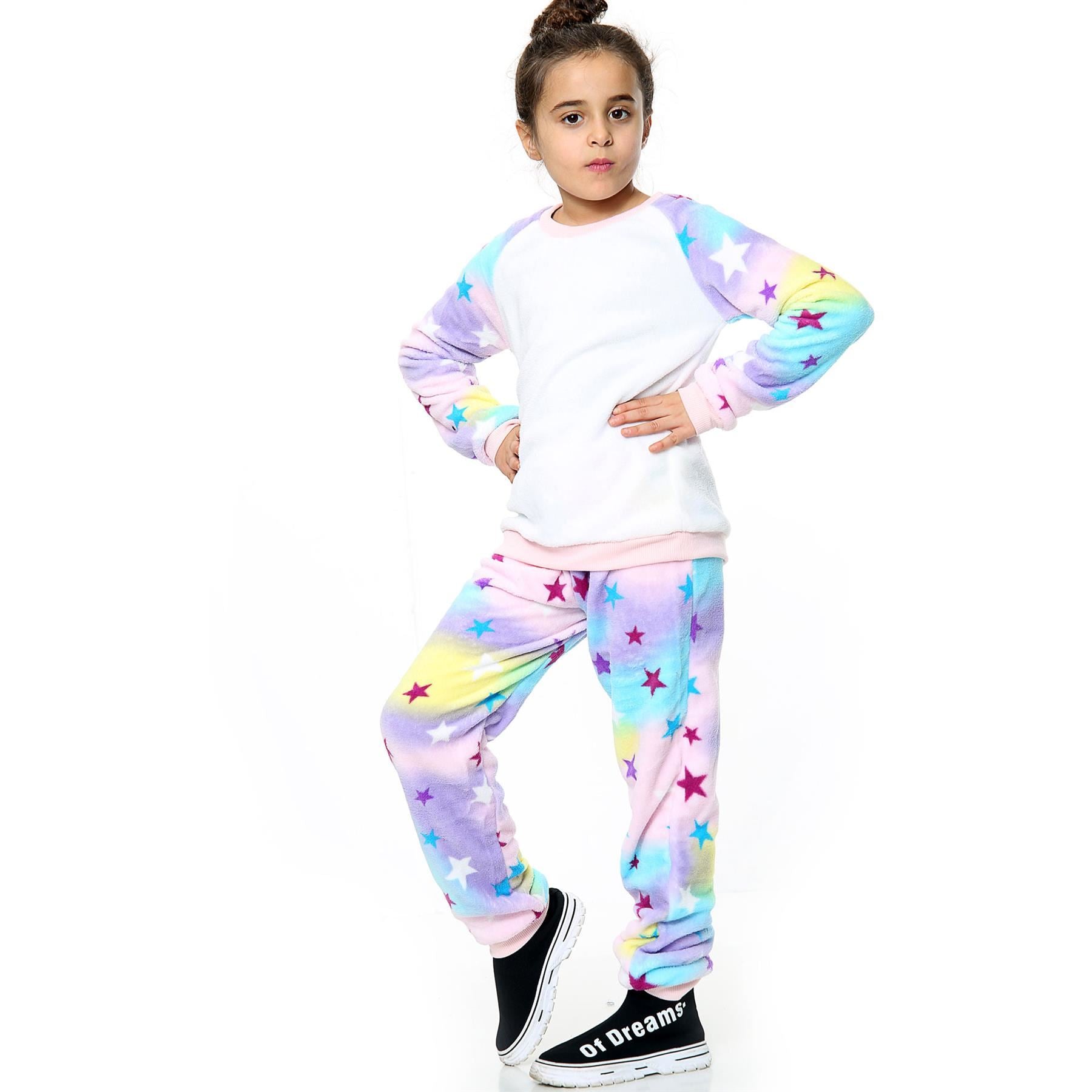 Kids Stars Print Sleeve Pyjamas Sleepsuit Costume For Girls Boys Age 5-13