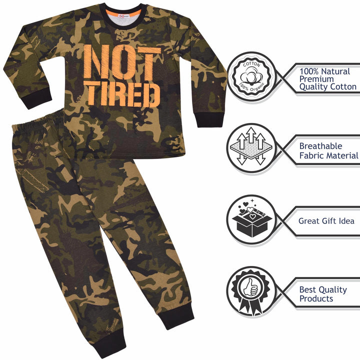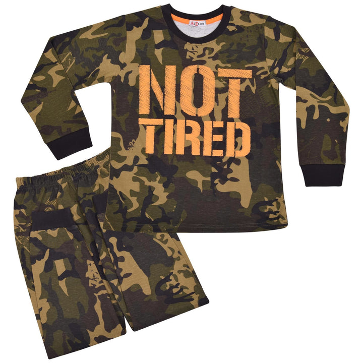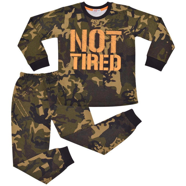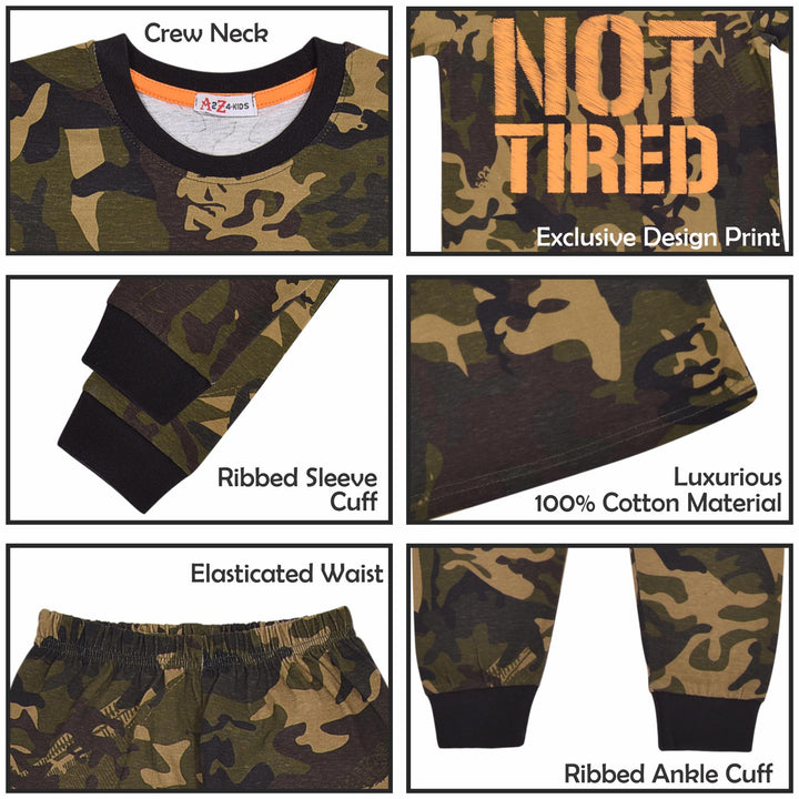 Kids Unisex Camo Green Print Pyjamas Children PJs Loungewear Age 2-13