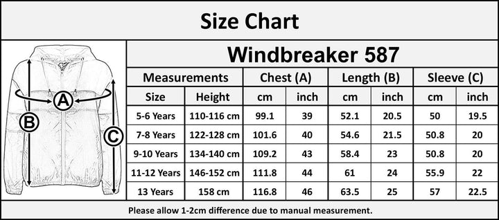 Crafted with care, our unisex kids windbreaker is made from high-quality 100% polyester fabric, offering durability and comfort for everyday wear. Its water-resistant and breathable properties make it an excellent choice for all types of outdoor activities, ensuring that your child stays dry and cozy in any weather, and giving you peace of mind as a parent. -