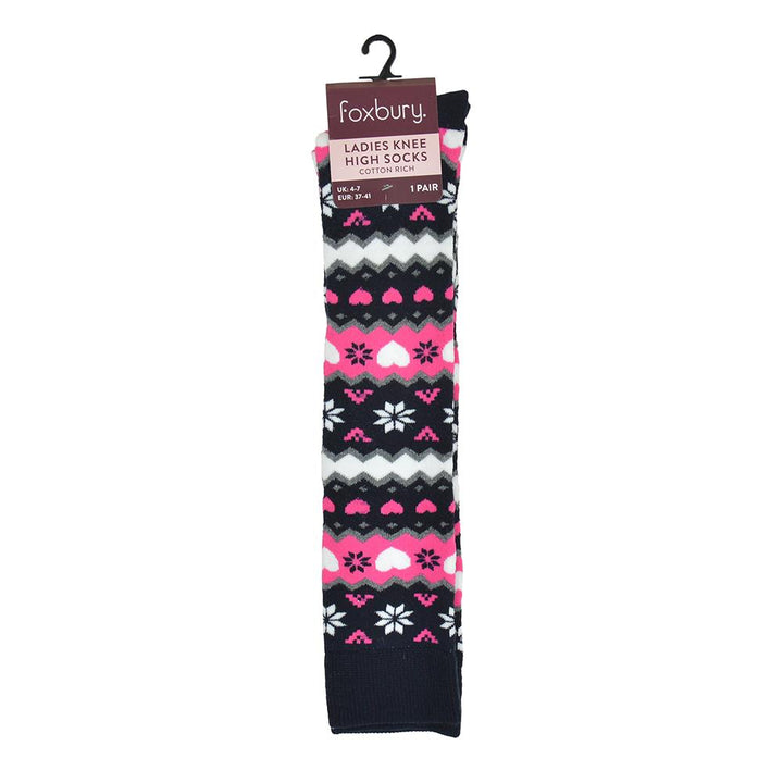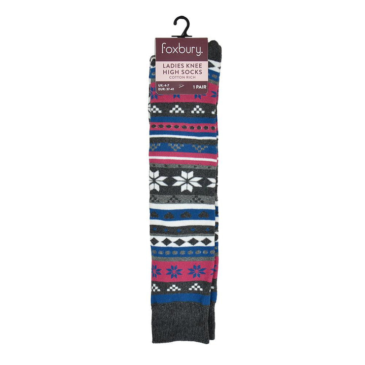 Ladies 2 Pack Fairisle Knee High Socks Novelty Sock Snowflake Welly Boot Socks