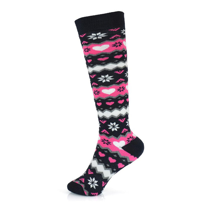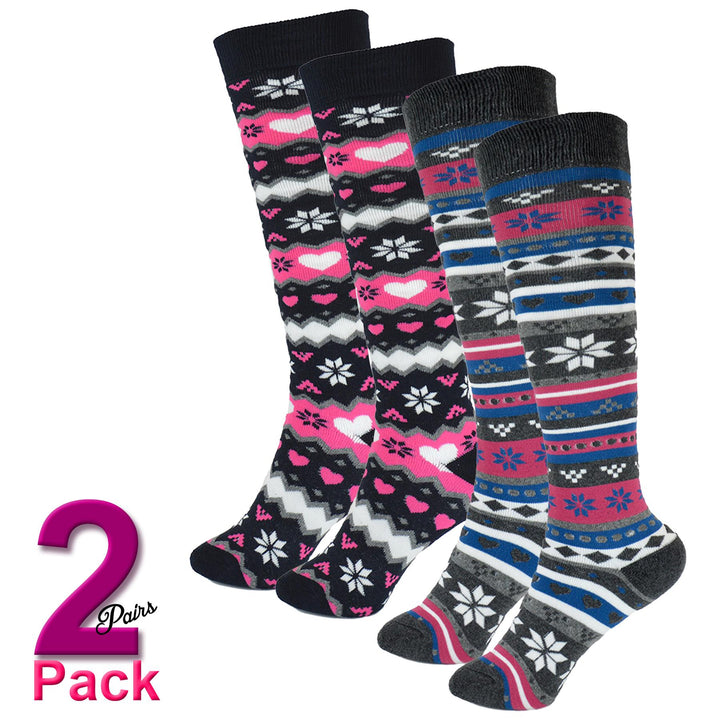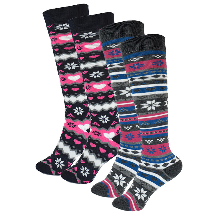 2 Pack: This set includes two pairs of high-quality, knee-high socks, giving you value and variety with beautiful Fair Isle snowflake and heart designs.