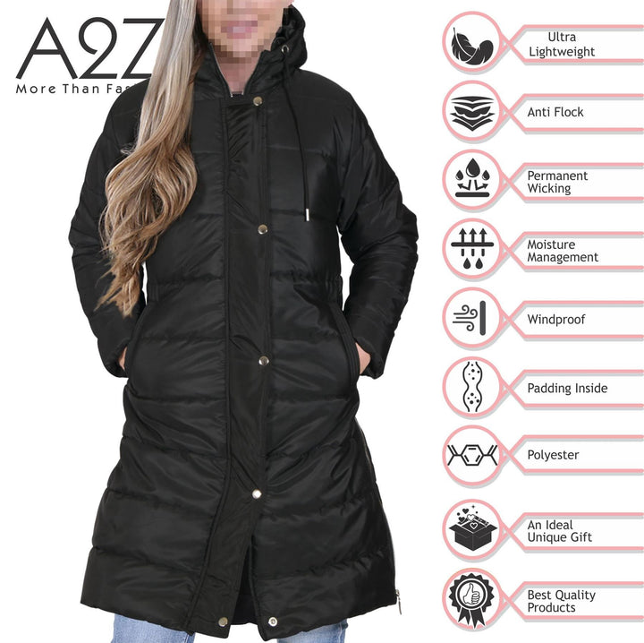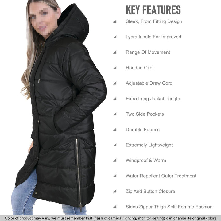 Ladies Adults Long Sleeve Oversized Black Hooded Quilted Padded Coat Jacket
