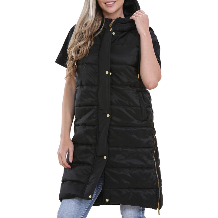 Ladies Adults Sleeveless Gilet Oversized Hooded Quilted Padded Coat Jacket