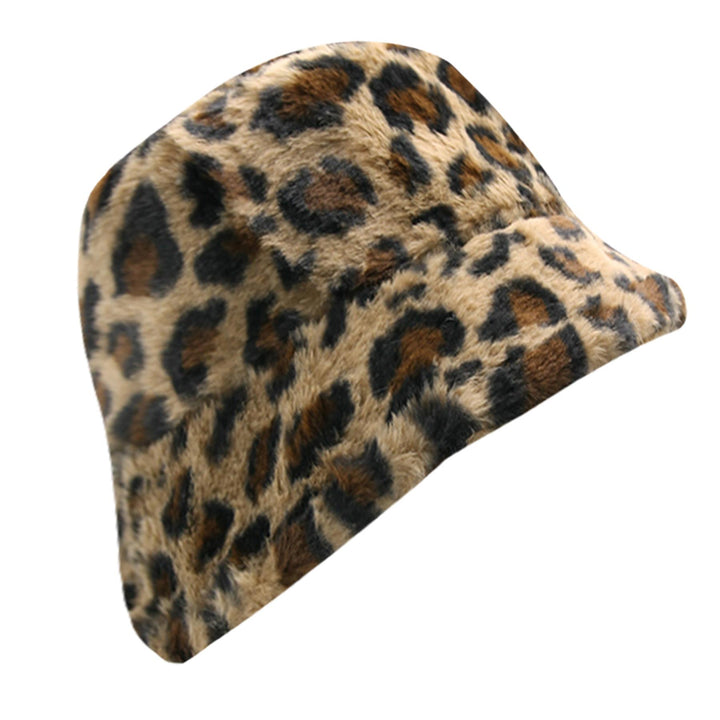 Ladies Bucket Hats Winter Warm Fluffy Leopard Faux Fur Soft Plush Fisherman Cap