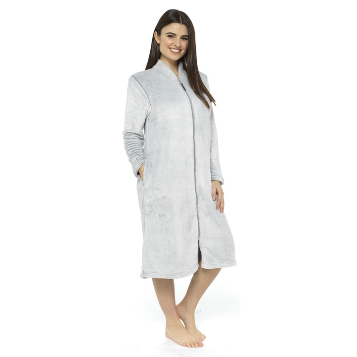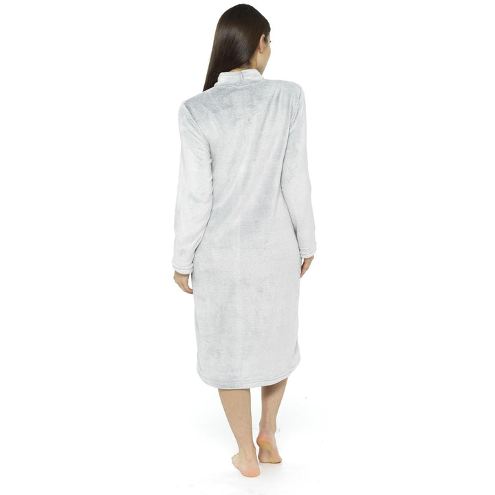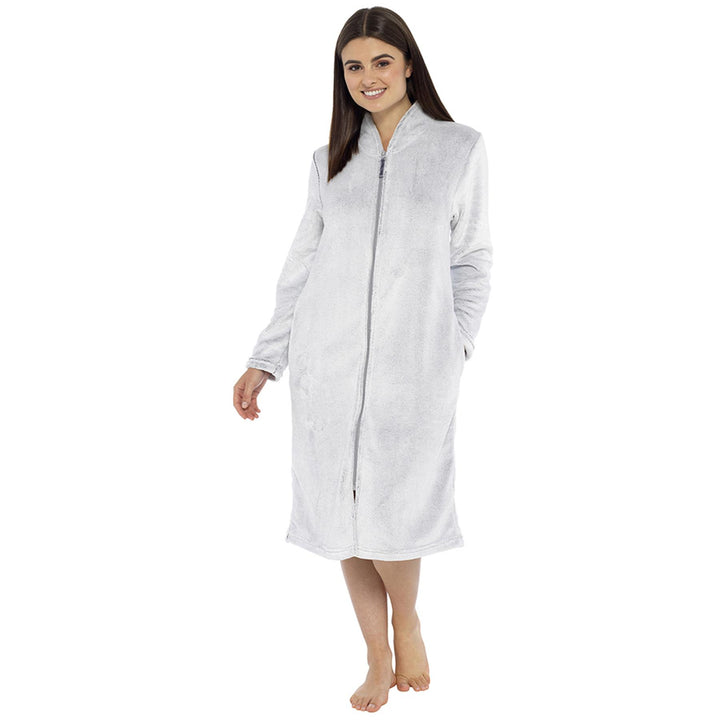 Ladies Dressing Gown Fluffy Bathrobe Women Zip Through Full Length House Coat