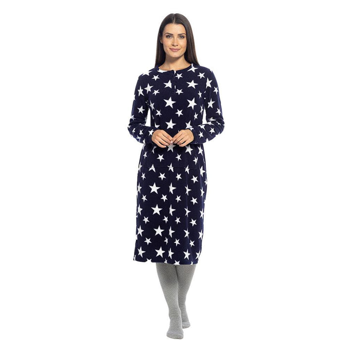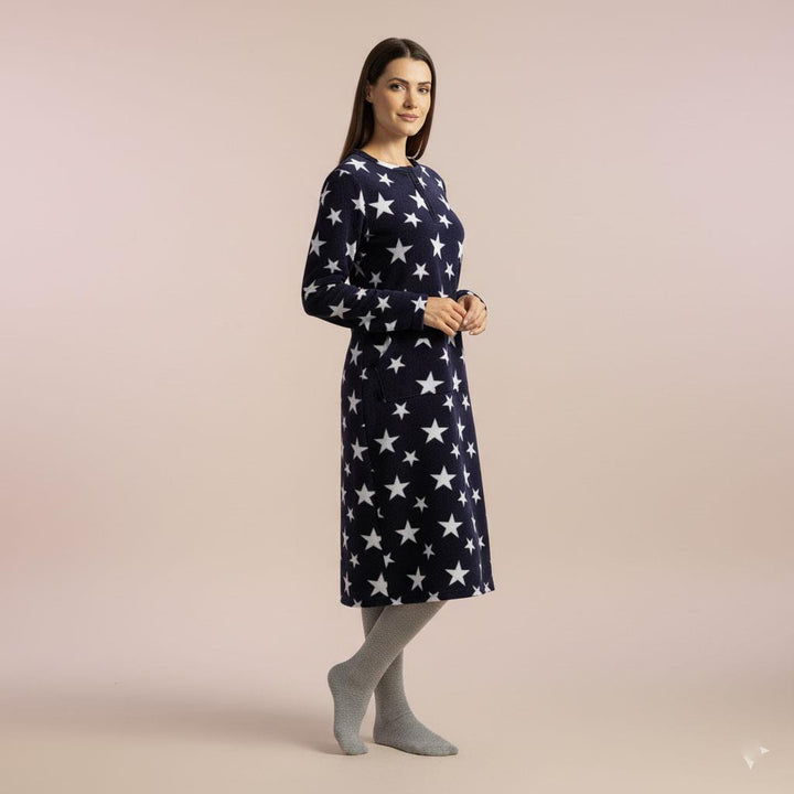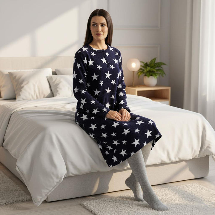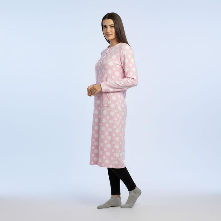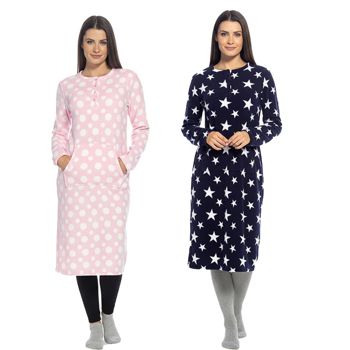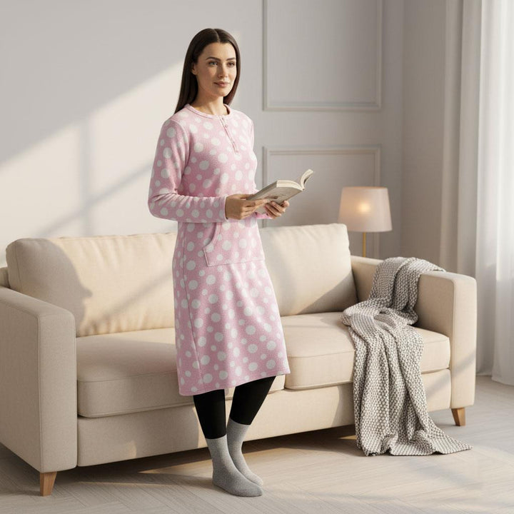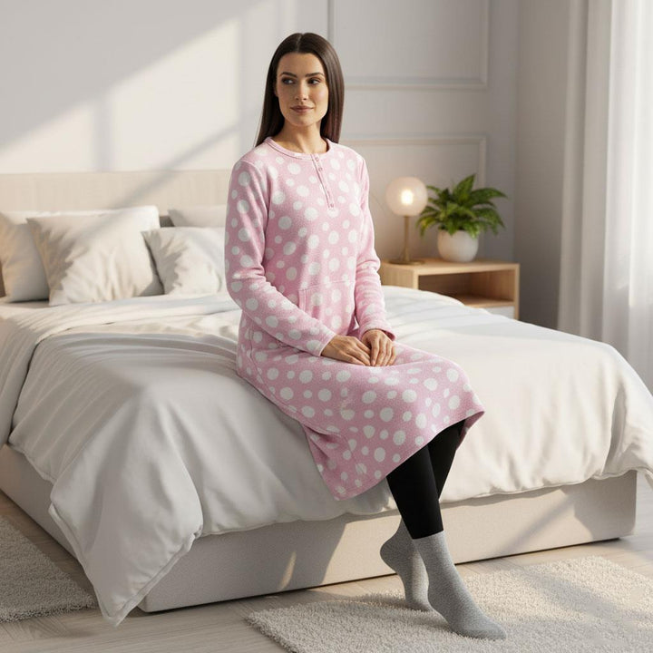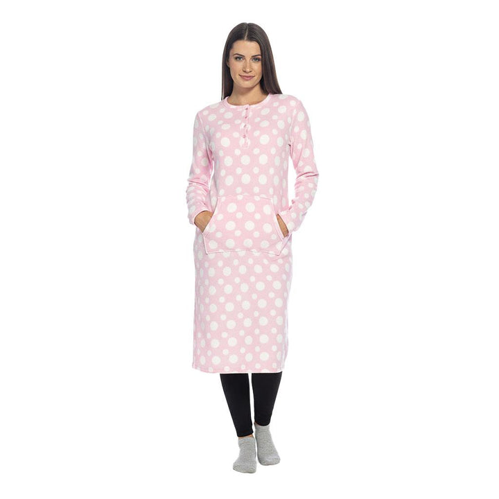 Ladies Fleece Nightie Long Sleeve Dress with Pockets Sizes 10-24