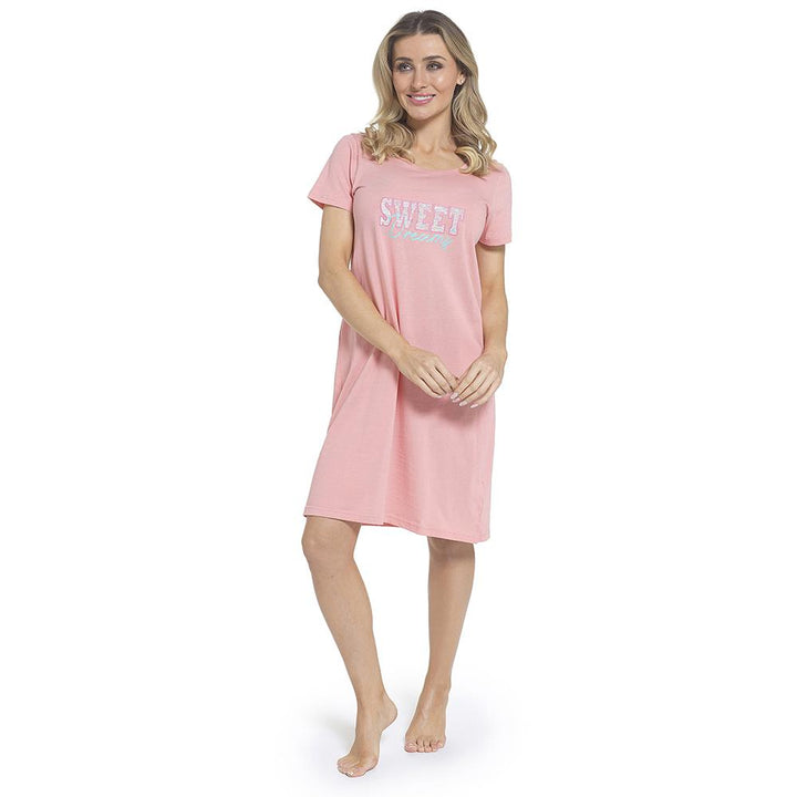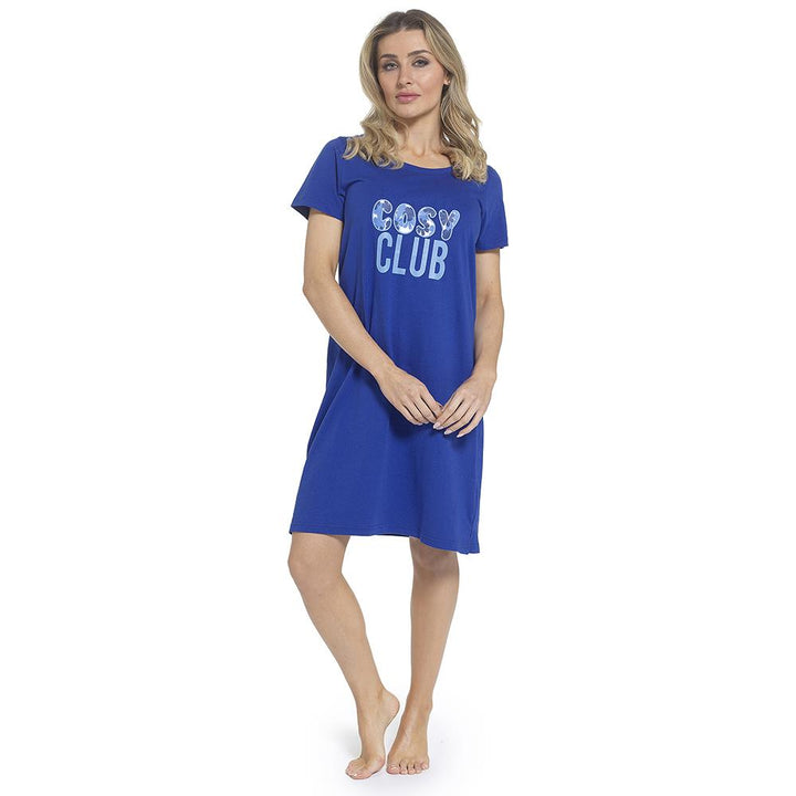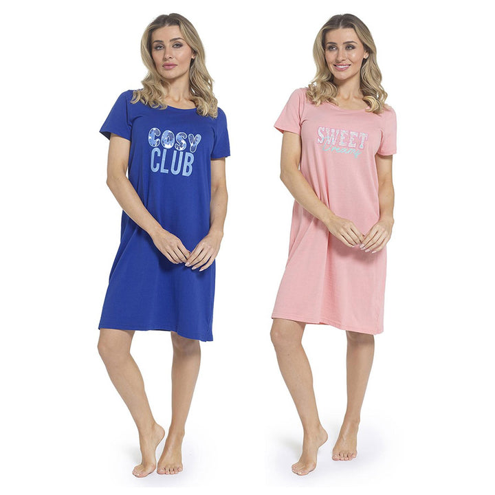Ladies Fun Print Sweet Dreams Blossom Pink or Cosy Club Blue Soft Cotton Nightie