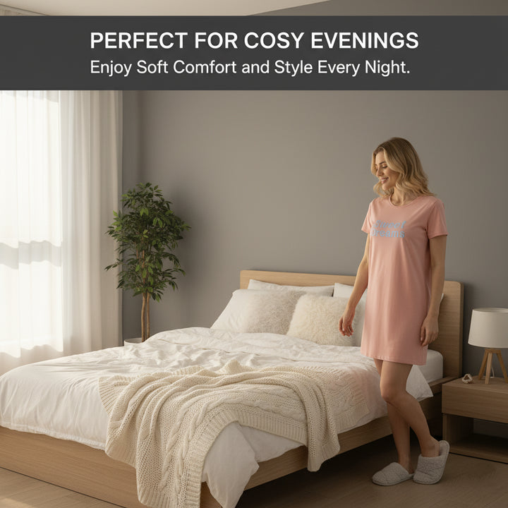 Crafted from premium soft-touch cotton jersey, this ladies nightie ensures breathable comfort and lightweight wear all night long. Perfect for relaxing evenings or restful sleep, it’s gentle on the skin and suitable for year-round comfort. -