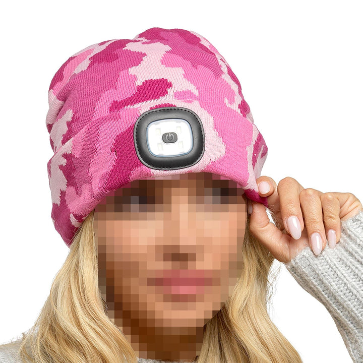 This womans LED warm winter hat is expertly crafted from premium materials, featuring a shell composed of 100% Acrylic. The soft, durable acrylic ensures ultimate comfort, providing a cozy feel against your skin. Its superior insulation keeps you warm on chilly autumn and winter days, making it the perfect accessory to enhance any cold weather outfit. -