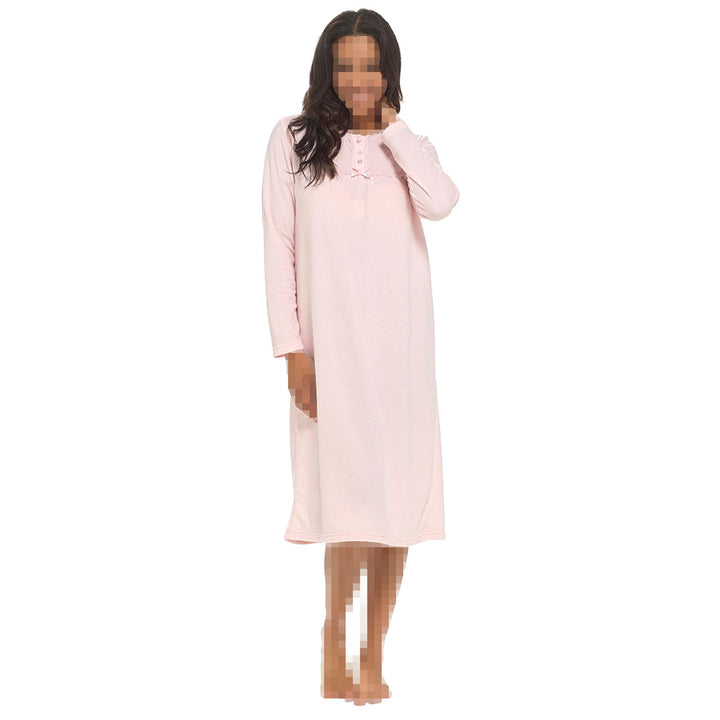 Ladies Nightie Polar Fleece Womens Nightgown Soft Feel Button Placket Sleepwear