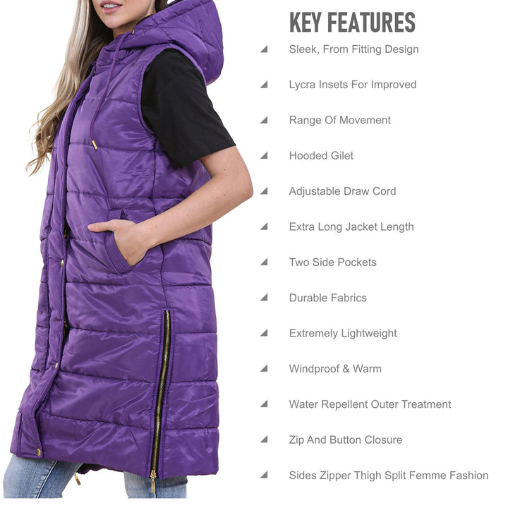 This longline gilet features a padded puffer style with a hood, full zip fastening at the front as well as a buttoned flap for extra wind resistance, front pockets with stitching detail on the pockets, two side zips allows the user more flexibility when walking. Available in 10 great looking colours for you to choose from, all you gotta do is check your size from our size chart and select your favorite colour.
