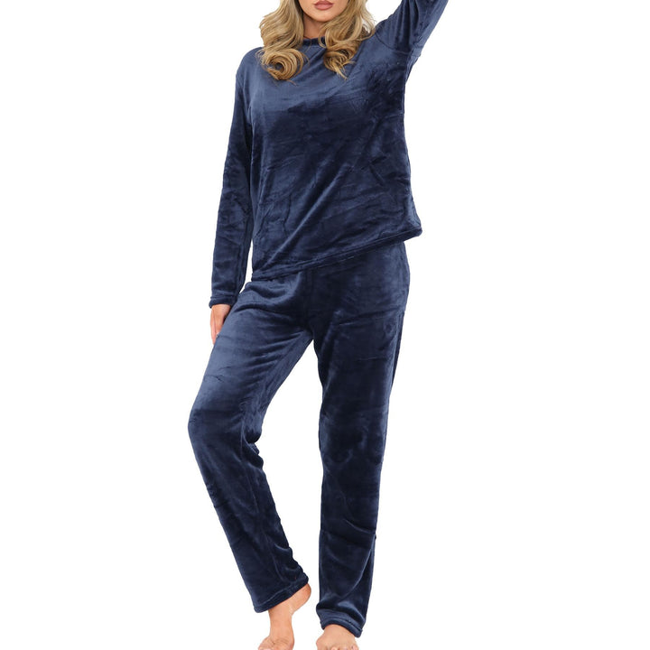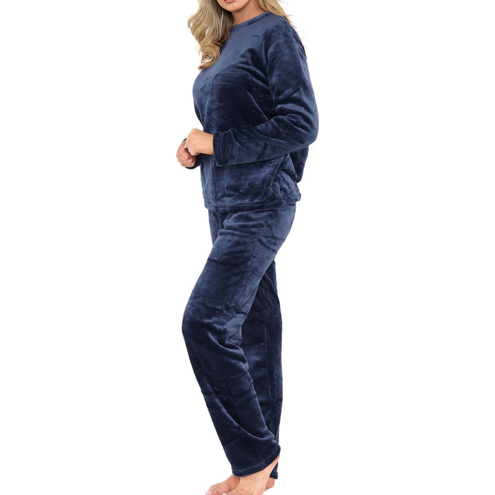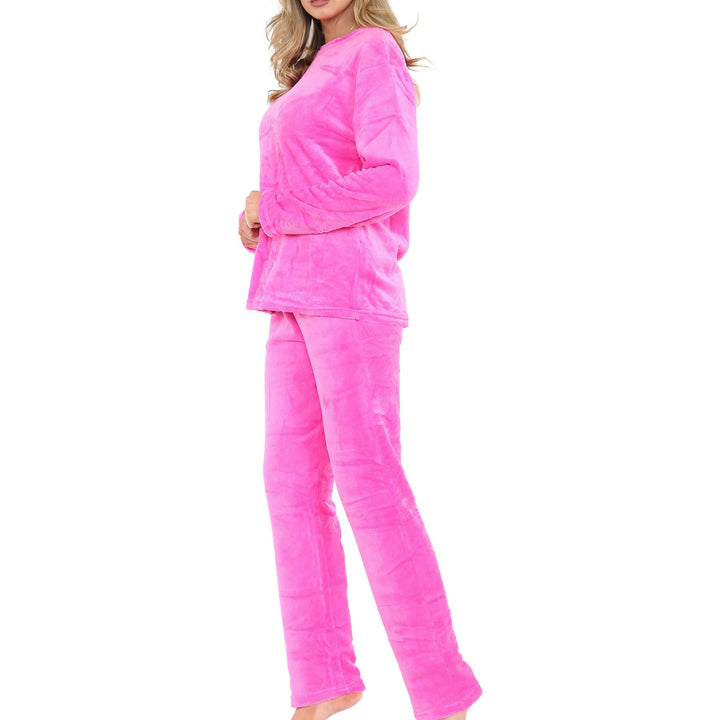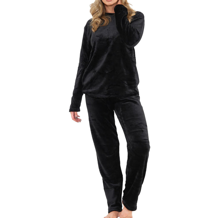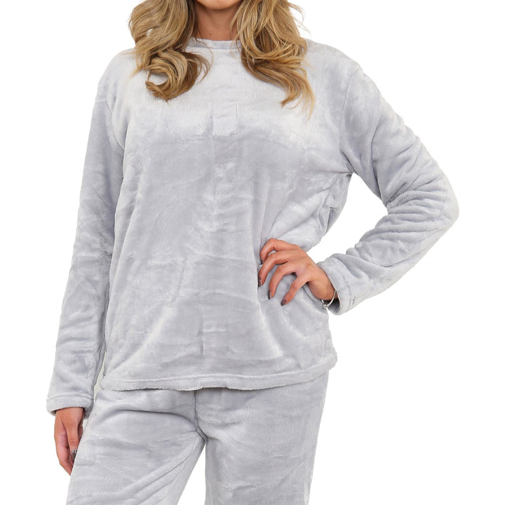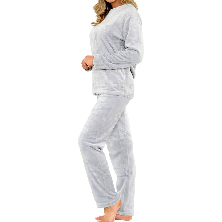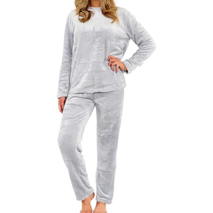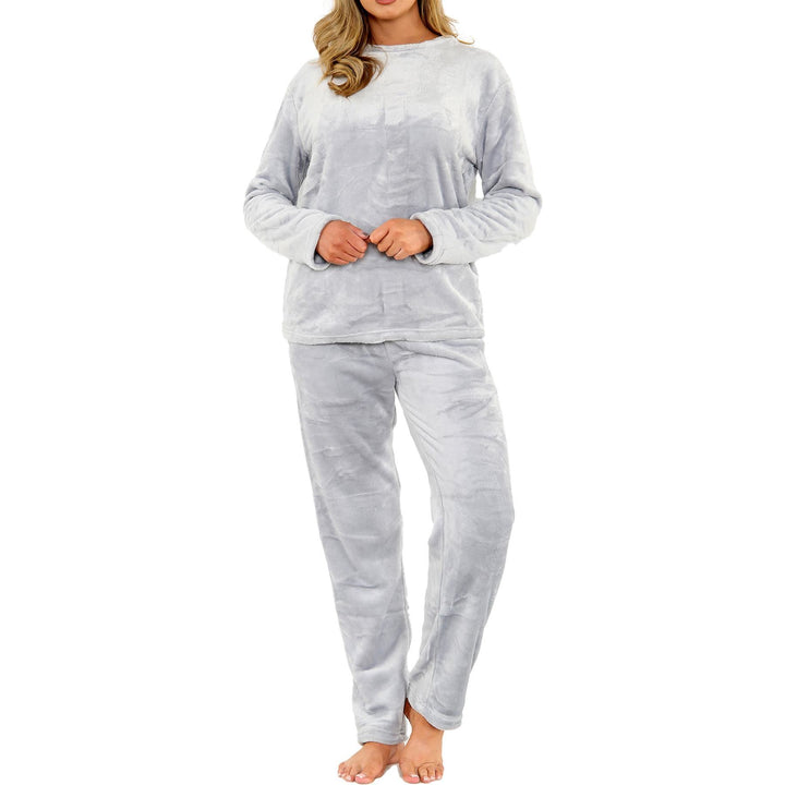 Ladies Pyjamas Soft Warm Fleece Adults Crew Neck Pyjamas 2 Piece Gift Set