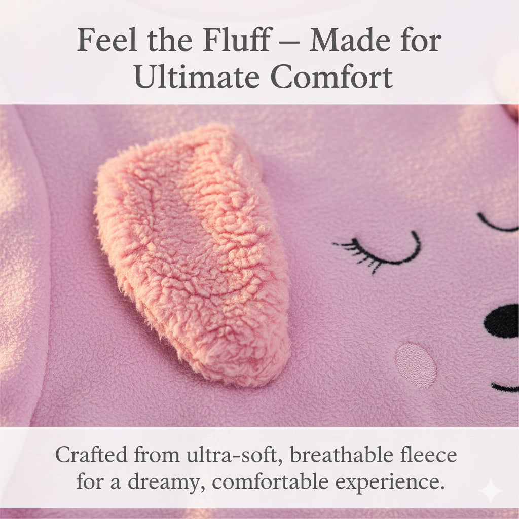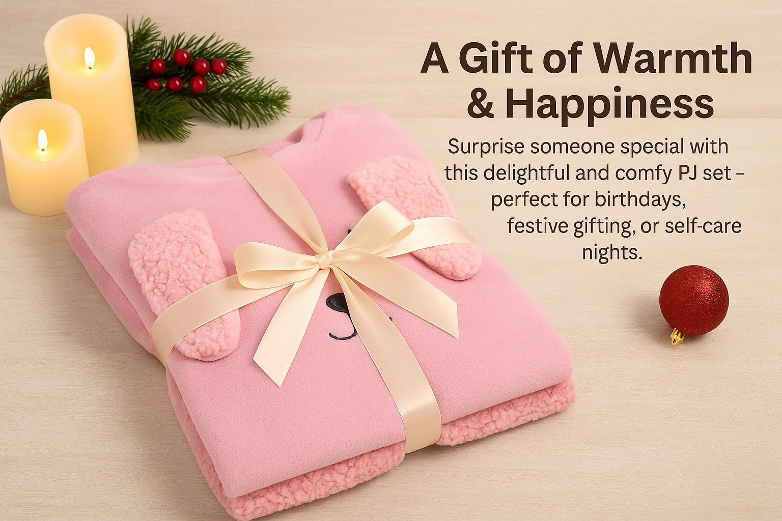 Adorable rabbit-themed pyjama set featuring 3D ears and an embroidered sleepy face for a cute, playful look. Perfect for relaxing evenings, cosy nights in, or as a fun winter gift. Ideal for lounging, movie nights, and bedtime comfort while adding a touch of charm to your nightwear collection.