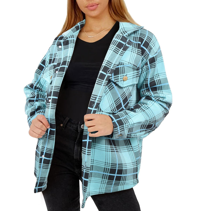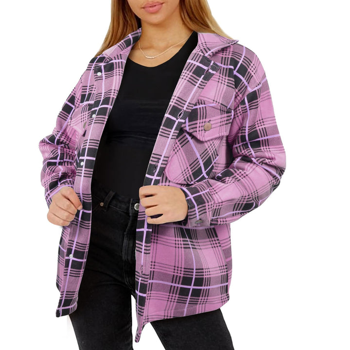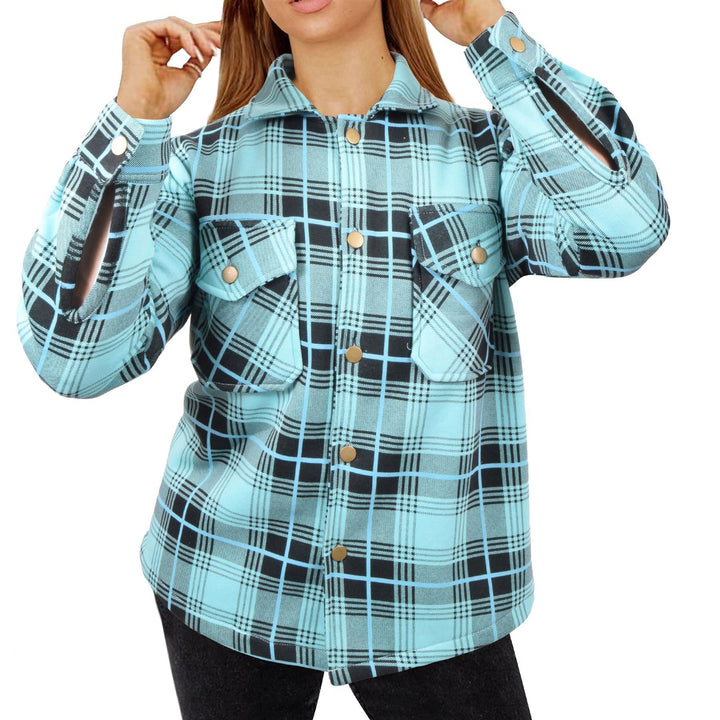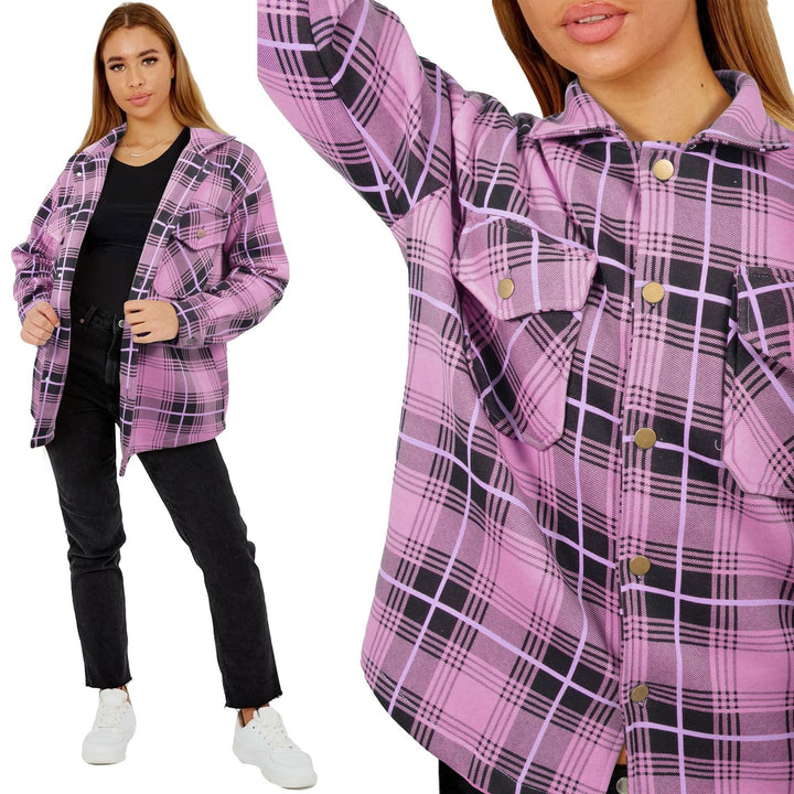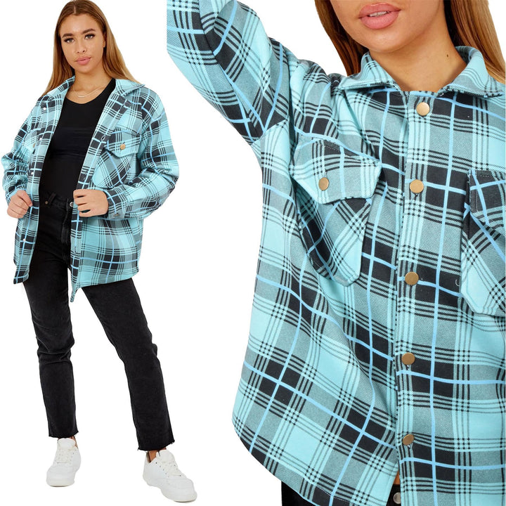 Ladies Shacket Checked Button Down Shirt Jacket Top Oversize Coat For Women