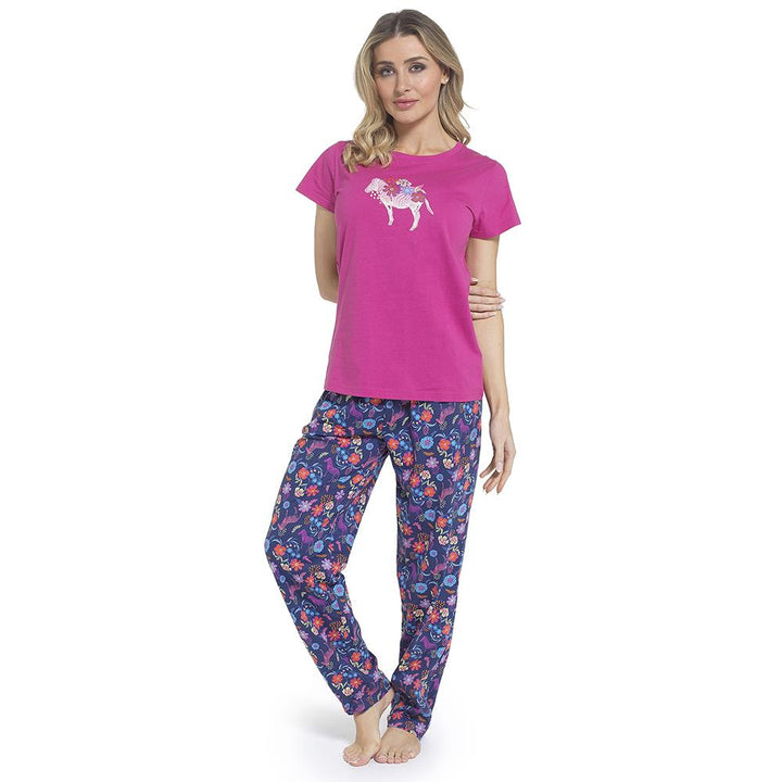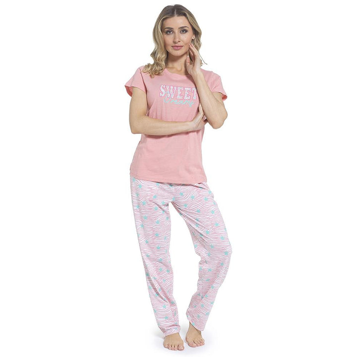 Ladies Short Sleeve Floral Zebra & Sweet Dreams Prints Soft Jersey Pyjama Set