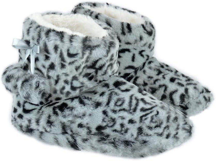Ladies Slipper Bootie Novelty Leopard Pattern Warm Winter Knitted Ankle Boots