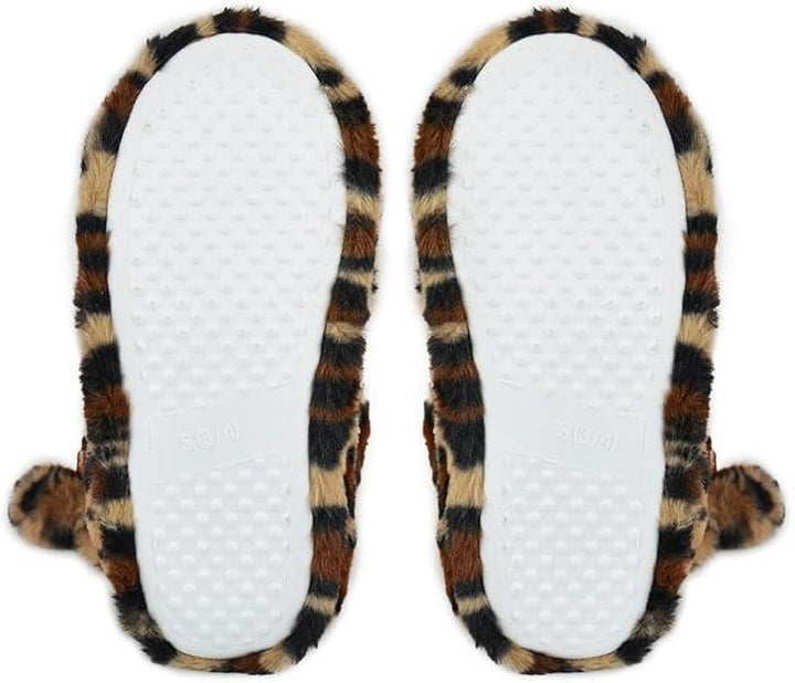 These cozy, novelty leopard print slippers are available in a charming brown and Grey color combination, blending comfort with a touch of playful style. Designed for a snug fit, they come in three sizes 3/4 UK, 5/6 UK, and 7/8 UK ensuring the perfect match for a variety of foot sizes.
