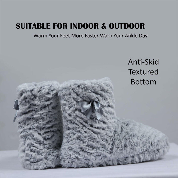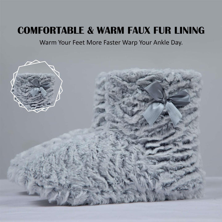 Ladies Slipper Novelty 2 Tone Bootie Plush Warm Winter Knitted Ankle Boots