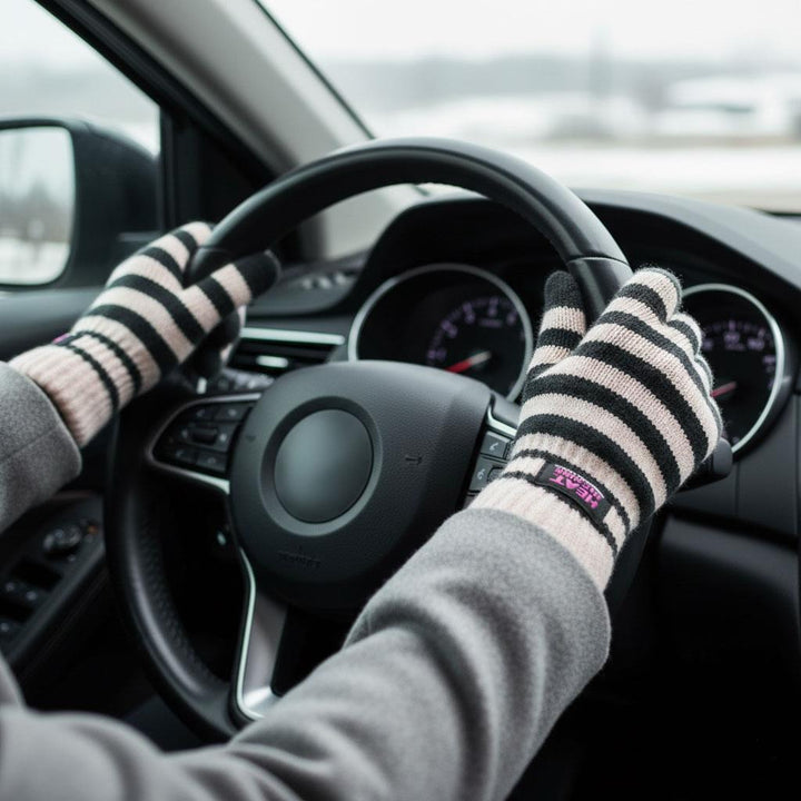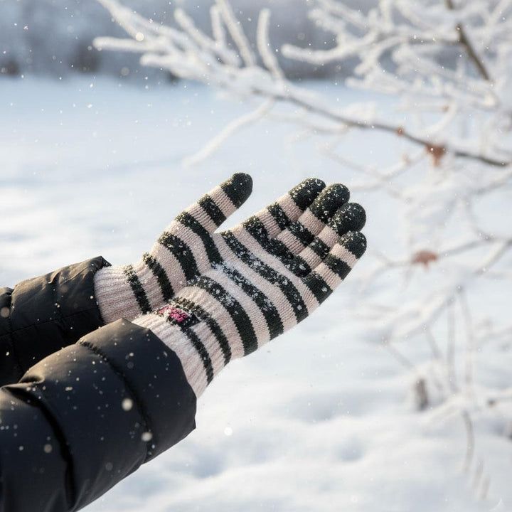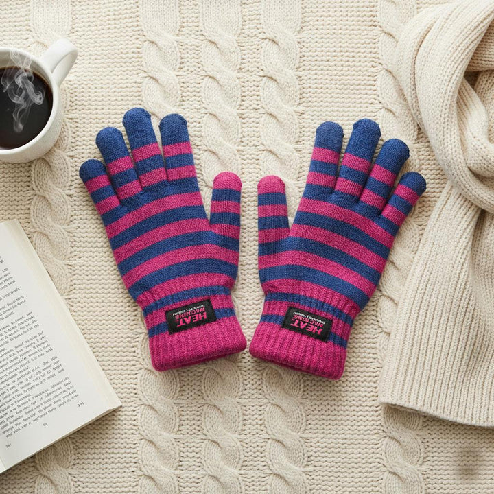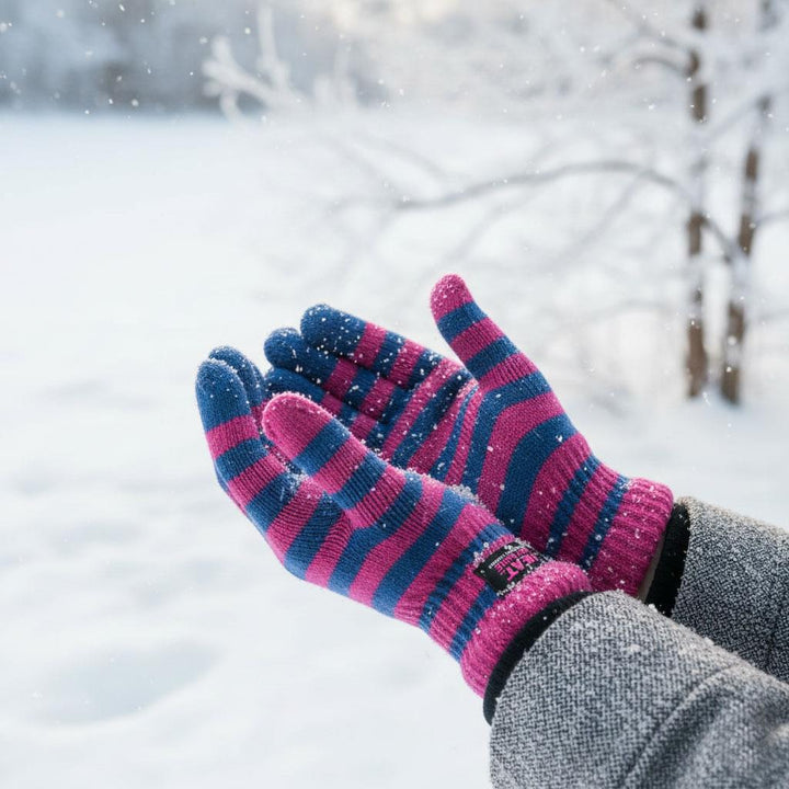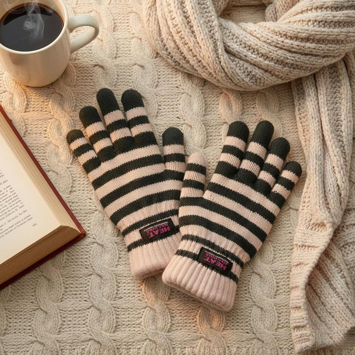 Ladies Stripe Gloves Winter Warm Thermal Mittens Women One Size Stretchy Gloves