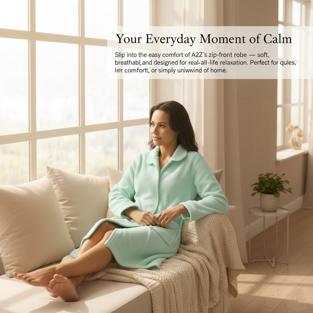 Crafted from 100% pure cotton towelling, this A2Z ladies bathrobe delivers exceptional softness and absorbency. The plush texture feels gentle on the skin, making it perfect for slipping on after a bath, shower, or relaxing spa day. Designed to keep you warm and cosy throughout the year. -