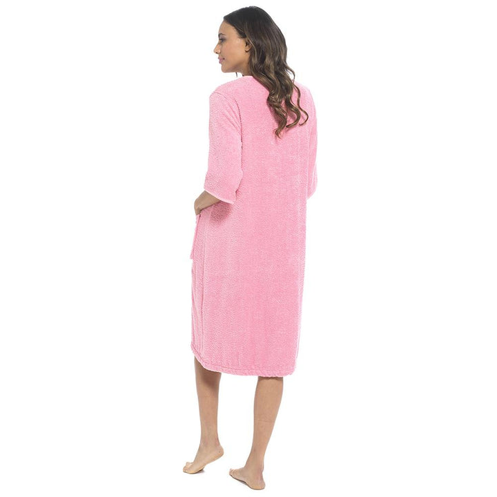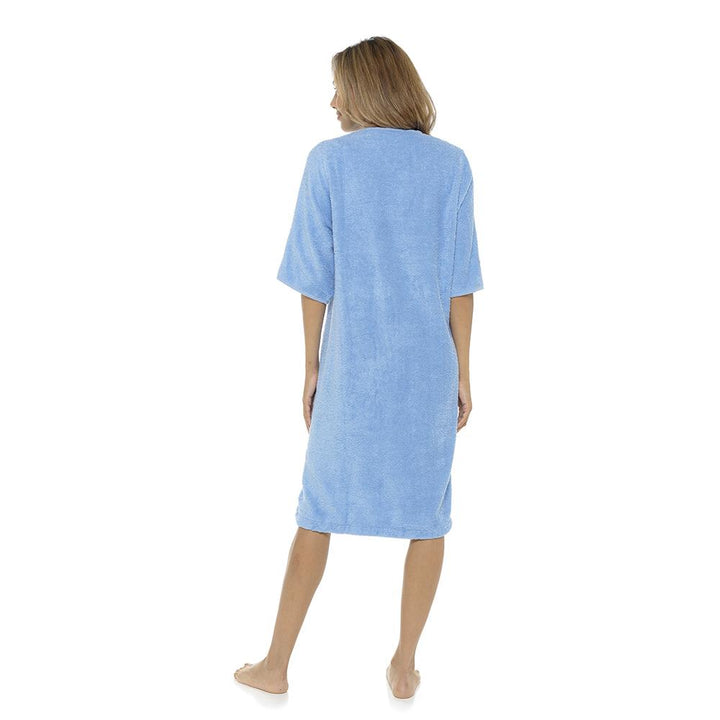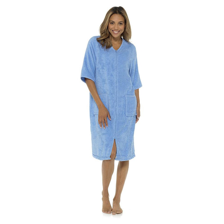 Ladies Towelling Robe Short Sleeve YKK Zip Crew Neck with Front Pocket Housecoat