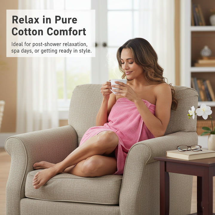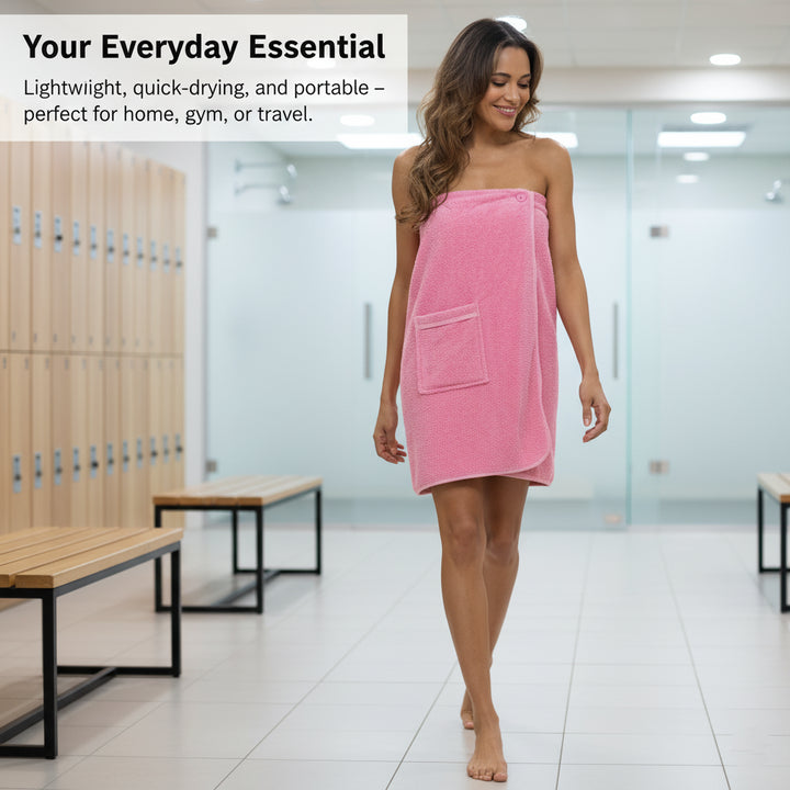 Ladies Towelling Shower Wrap Robe Bath Spa Wrap with Pocket & Adjustable Strap