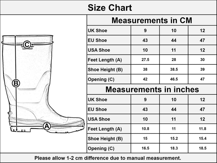 Men Rain Waterproof Footwear Wellingtons Snow Boot Wellies Rubber Safety Boots