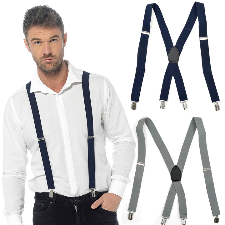Mens Adjustable Elastic Braces With 4 Strong Metal Clips Heavy Duty Suspenders