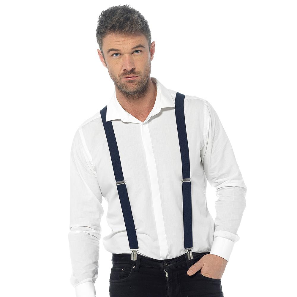 The mens suspender straps are made of 100% polyester and have faux leather connections. They include four stainless steel clips for added style and durability. This item is great for trousers and jeans. The double layer of soft webbing and classic X-back design ensures a comfortable fit for adults.
